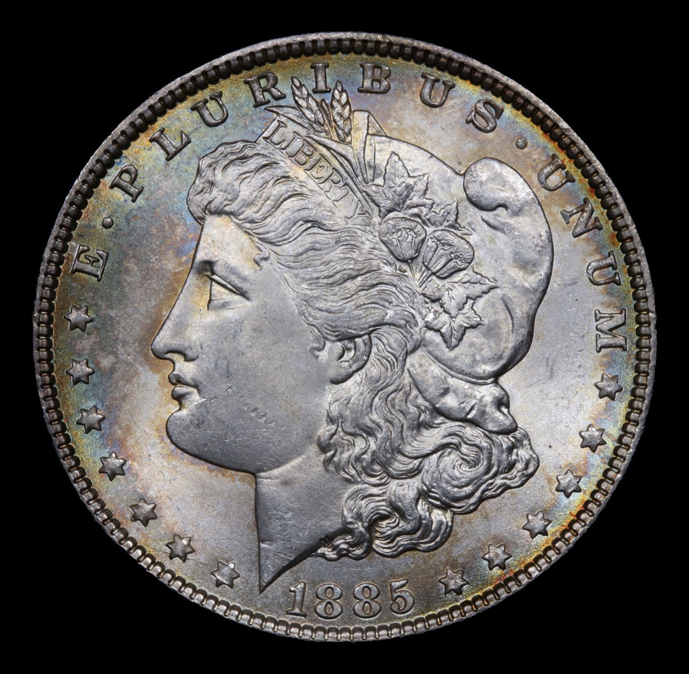 ***Auction Highlight*** 1885-p Rainbow Toned Morgan Dollar $1 Graded GEM+ Unc By USCG (fc)