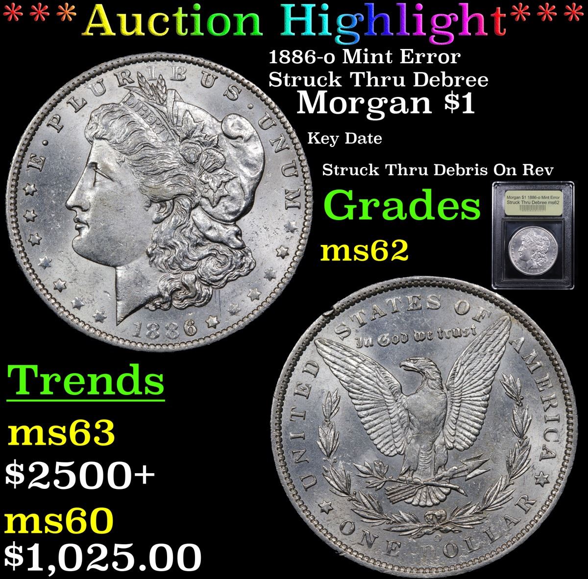 ***Auction Highlight*** 1886-o Mint Error Struck Thru Debree Morgan Dollar $1 Graded Select Unc By U