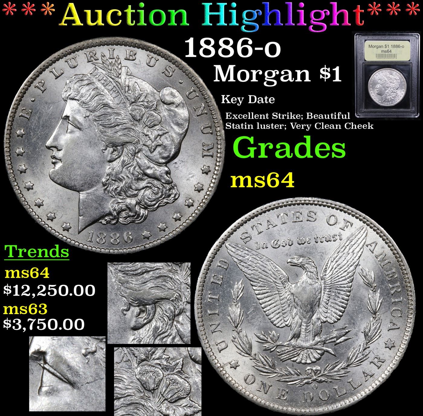 ***Auction Highlight*** 1886-o Morgan Dollar $1 Graded Choice Unc BY USCG. This is an outstanding, high end MS-64 to represent the conditionally challenging 1886-O silver dollar. Sharply struck with fulsome mint luster, both sides also possess a brilliant silver white appearance. Illustrative of one of the situations that make the Morgan dollar series so appealing to numismatists, this issue is far scarcer in Mint State than the 1883-O, 1884-O and 1885-O despite having a higher mintage (10,710,000 coins for the 1886-O as opposed to, for example, 9,185,000 pieces for the 1885-O). Given that the 1886-O is plentiful in worn condition, millions of examples likely found their way into circulation beginning in the late 19th century. Millions more, probably more than half of the mintage, were almost certainly kept in storage until melted under the terms of the 1918 Pittman Act. Today the conditionally challenging nature of this New Orleans Mint issue is well known, as is the prevalence of poorly struck coins among the relatively few Uncirculated survivors. Exceptionally well produced and preserved, the premium quality example offered here is sure to see spirited bidding. A Corey's Pick, Bid to Win, Don't let it get Away, you might not find its equal Coin. I give this coin my highest recommendation