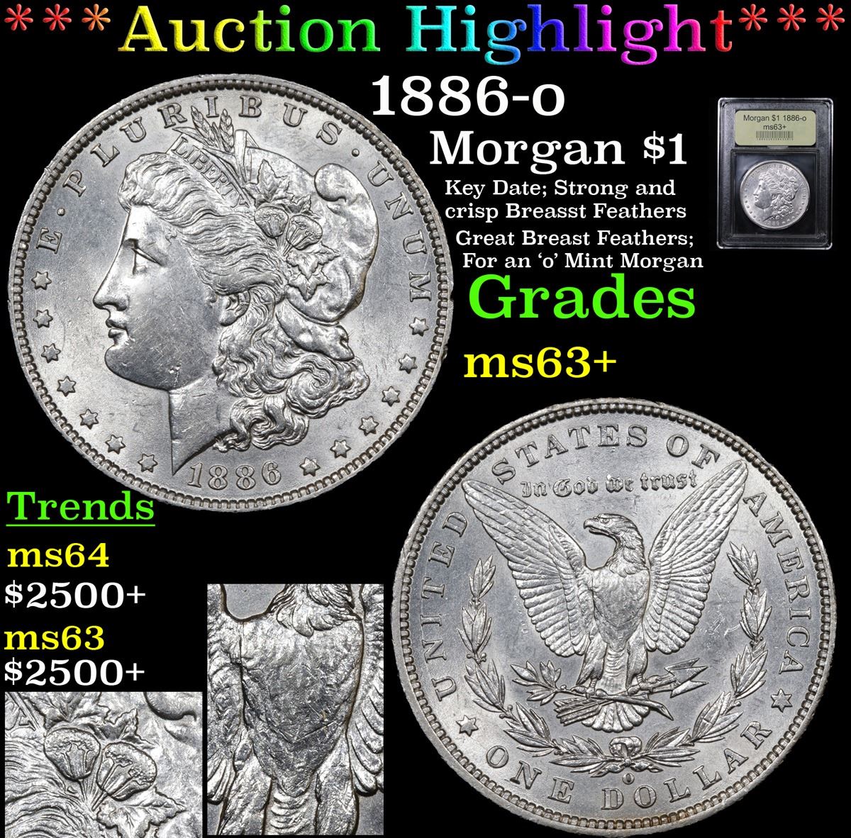 ***Auction Highlight*** 1886-o Key Date; Strong and crisp Breast Feathers Great Breast Feathers; For an 'o' Mint Morgan Morgan Dollar $1 Graded Select+ Unc By USCG. Great Details in the cotton bolls; Terrific Eye Appeal A Corey's Pick, Bid to Win, Don't let it get Away, you might not find its equal Coin