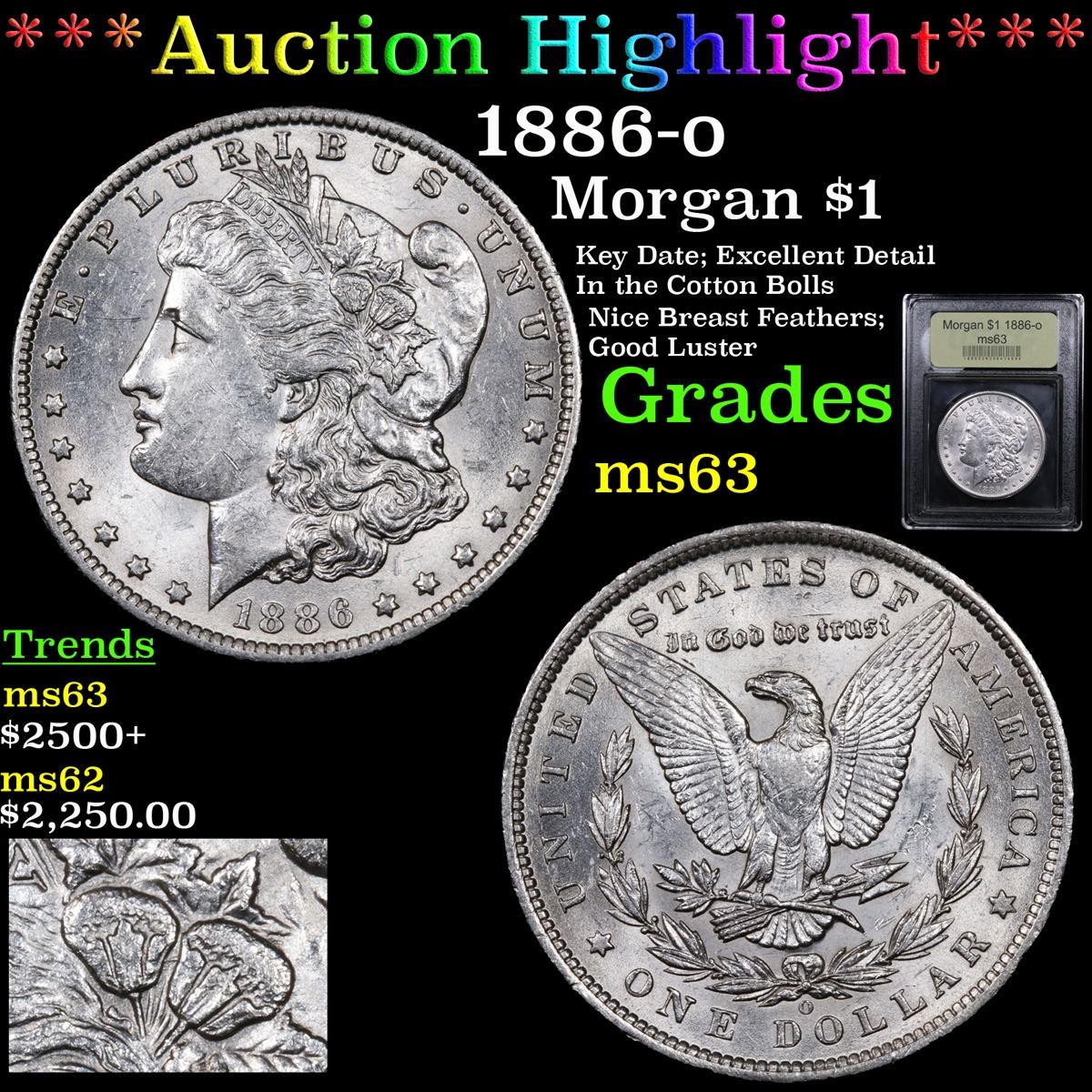 ***Auction Highlight*** 1886-o Key Date; Excellent Detail In the Cotton Bolls Nice Breast Feathers; Good Luster Morgan Dollar $1 Graded Select Unc By USCG. A Corey's Pick, Bid to Win, Don't let it get Away, you might not find its equal Coin