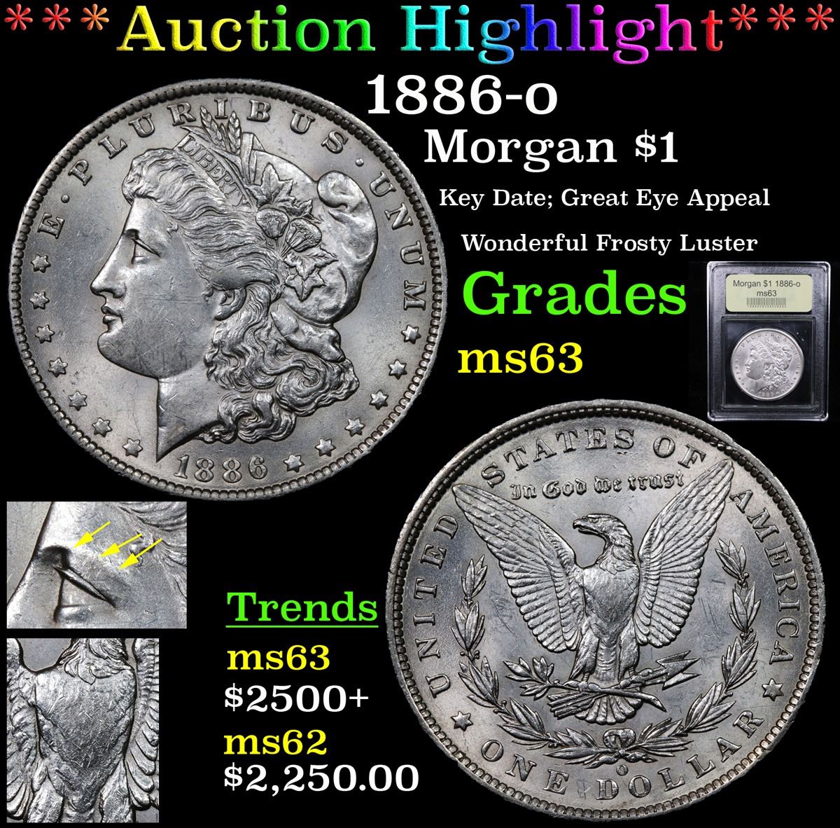 ***Auction Highlight*** 1886-o Morgan Dollar $1 Graded Select Unc By USCG. Nice Breast Feathers; Well Struck; Strong Unbroken Luster A Corey's Pick, Bid to Win, Don't let it get Away, you might not find its equal Coin. I give this coin my highest recommendation