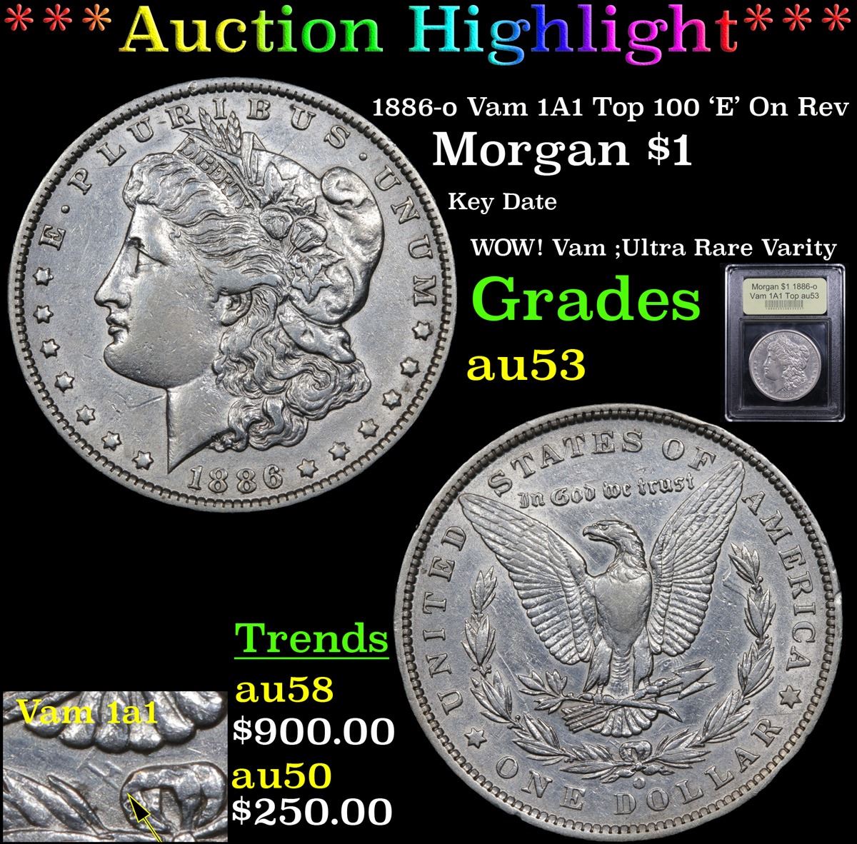 ***Auction Highlight*** 1886-o Vam 1A1 Top 100 'E' On Rev Morgan $1 Graded Select AU By USCG (fc)
