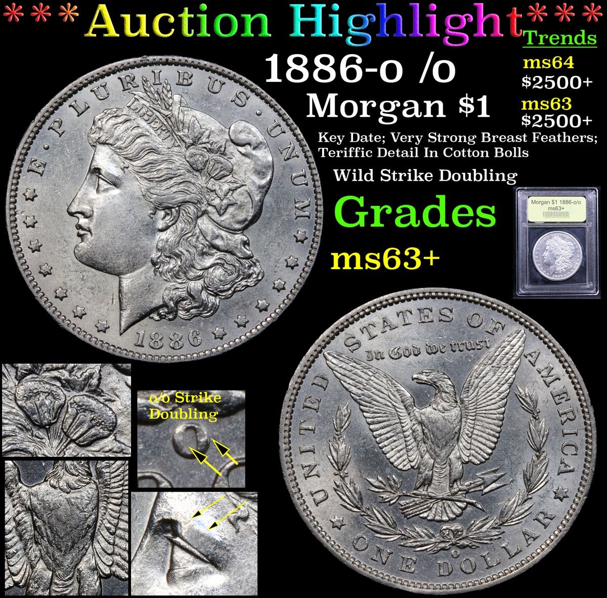 ***Auction Highlight*** 1886-o /o Morgan Dollar $1 Graded Select+ Unc By USCG. Outstanding example of this key date Morgan. Beautiful eye appeal and a very strong strike, especially for a New Orleans Minted Issue. Sharp breast feathers, great detail in the cotton bolls, and a sharp well peaked eyebrow. A dynamite and rare issue. A Corey's Pick, Bid to Win, Don't let it get Away, you might not find its equal Coin. I give this coin my highest recommendation