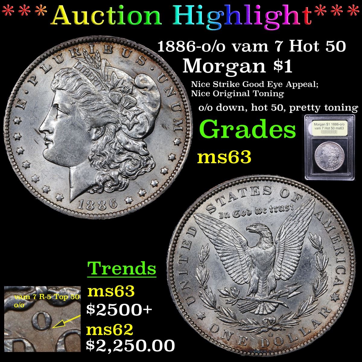 ***Auction Highlight*** 1886-o /o vam 7 Hot 50 Morgan Dollar $1 Graded Select Unc By USCG. A Corey's Pick, Bid to Win, Don't let it get Away, you might not find its equal Coin. I give this coin my highest recommendation