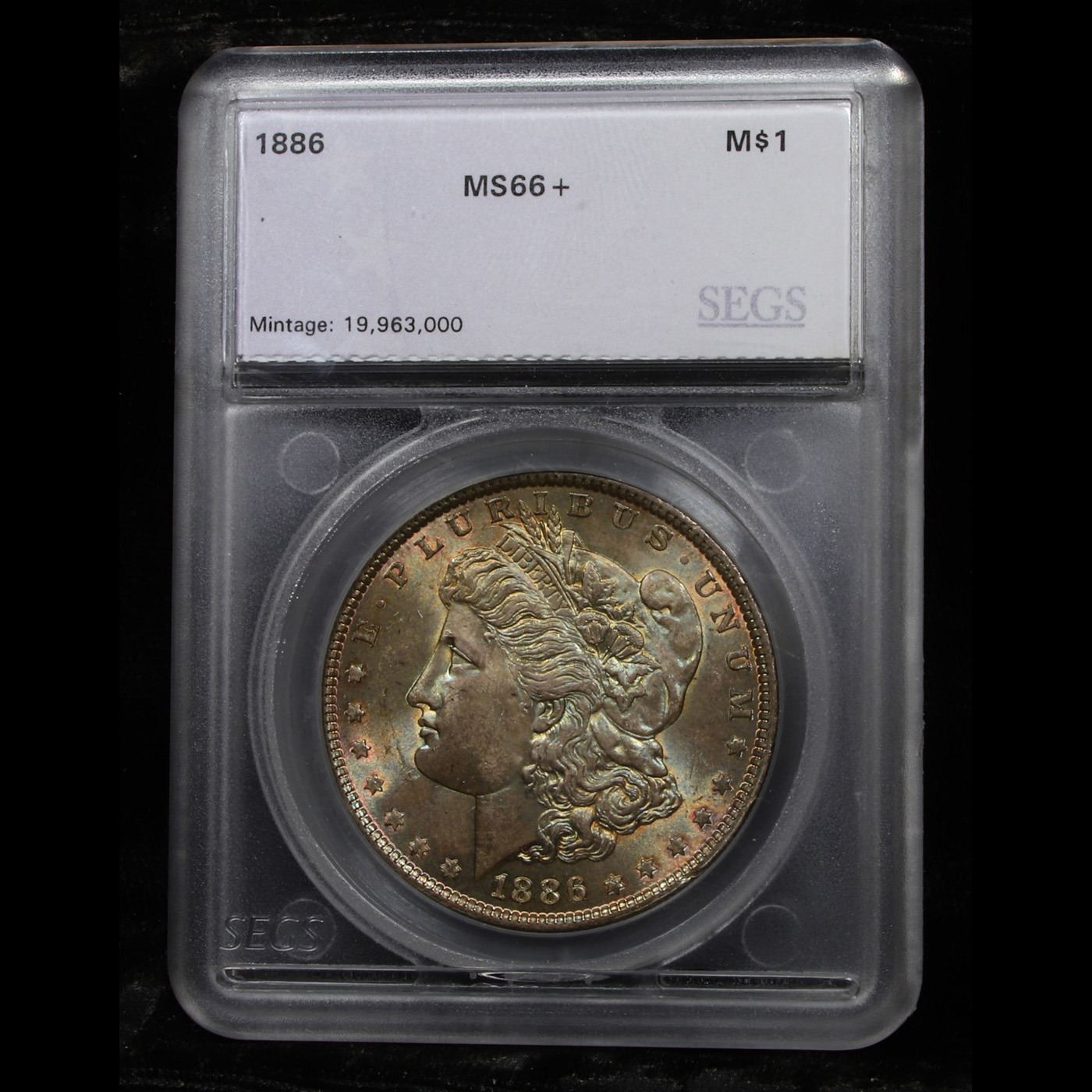 ***Auction Highlight*** 1886-p Colorfully Toned Morgan Dollar $1 Graded ms66+ By SEGS (fc)