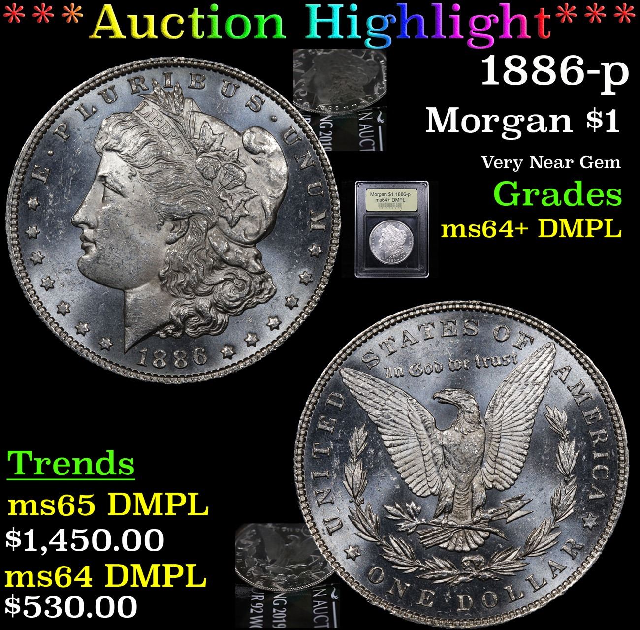 ***Auction Highlight*** 1886-p . Very Near Gem Morgan Dollar $1 Graded Choice Unc+ DMPL By USCG. A Corey's Pick, Bid to Win, Don't let it get Away Coin
