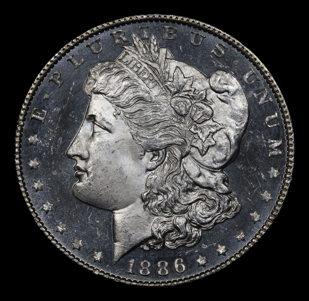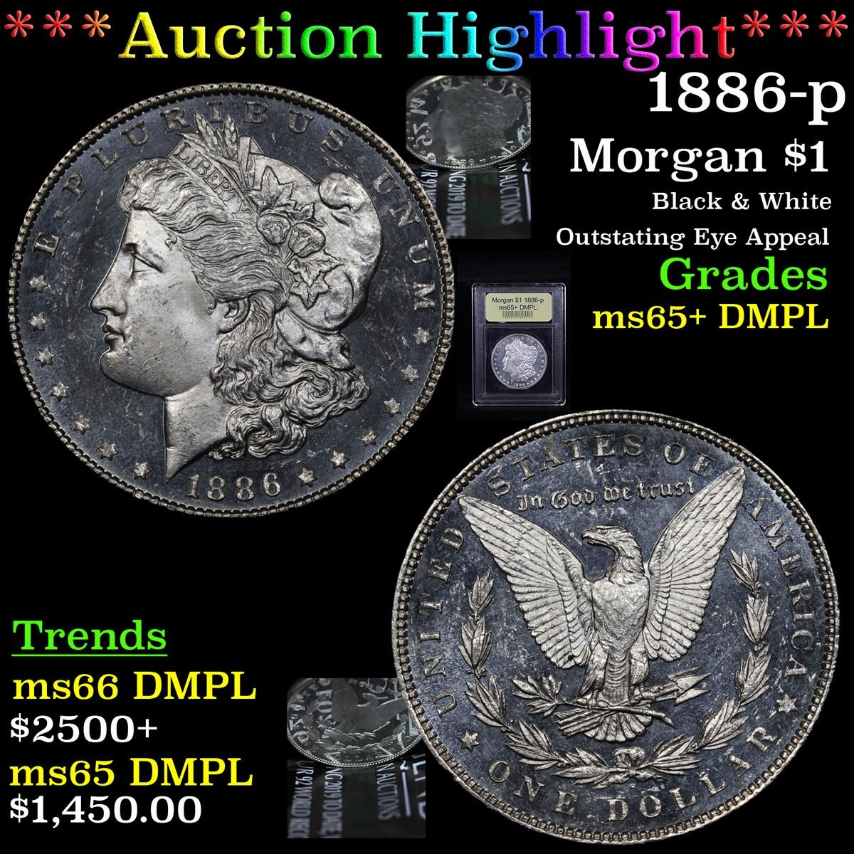 ***Auction Highlight*** 1886-p Black & White Outstating Eye Appeal Morgan Dollar $1 Graded GEM+ DMPL By USCG. 0