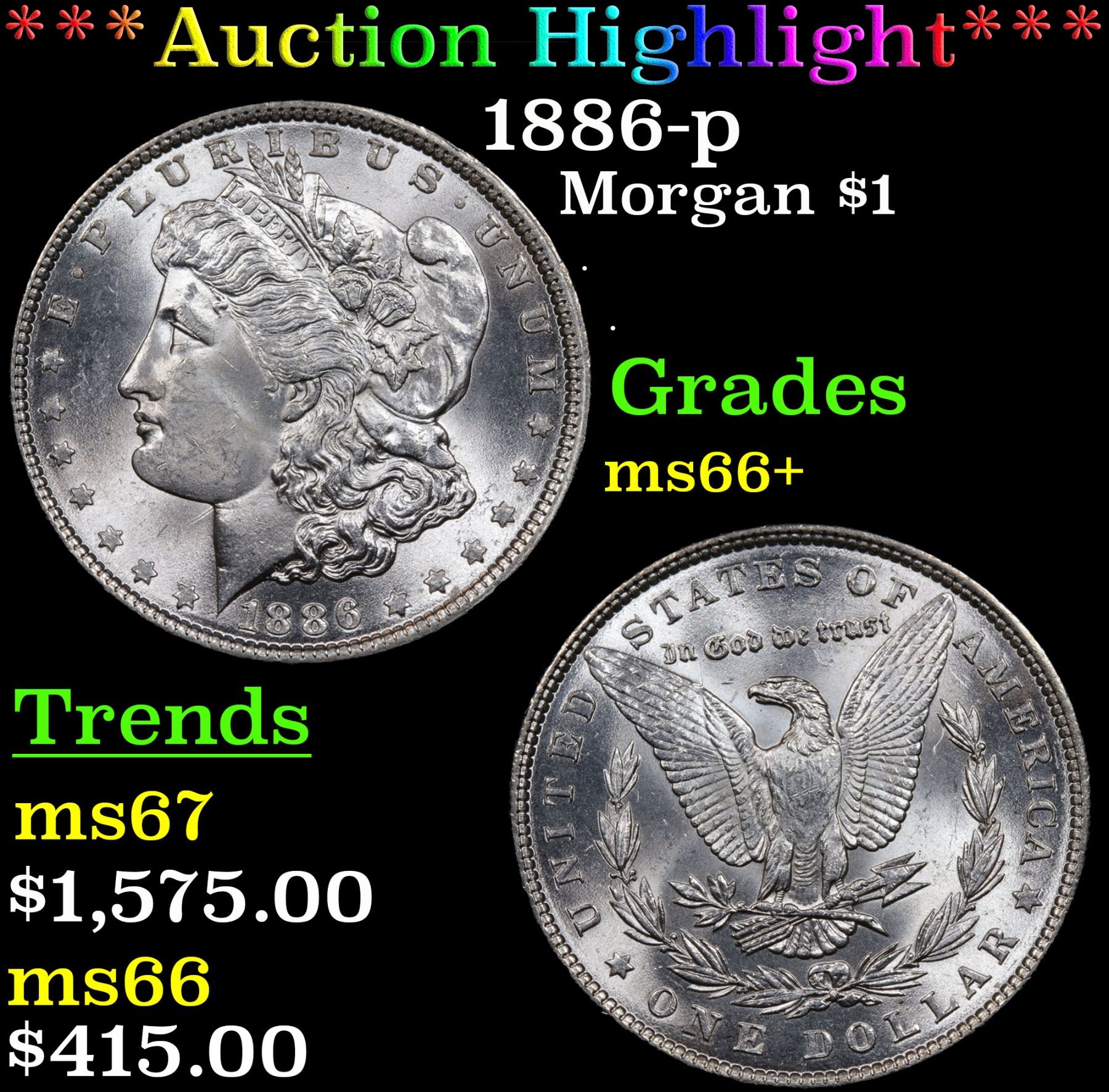 ***Auction Highlight*** 1886-p Morgan Dollar $1 Graded GEM++ Unc By USCG. A Corey's Pick, Bid to Win Coin