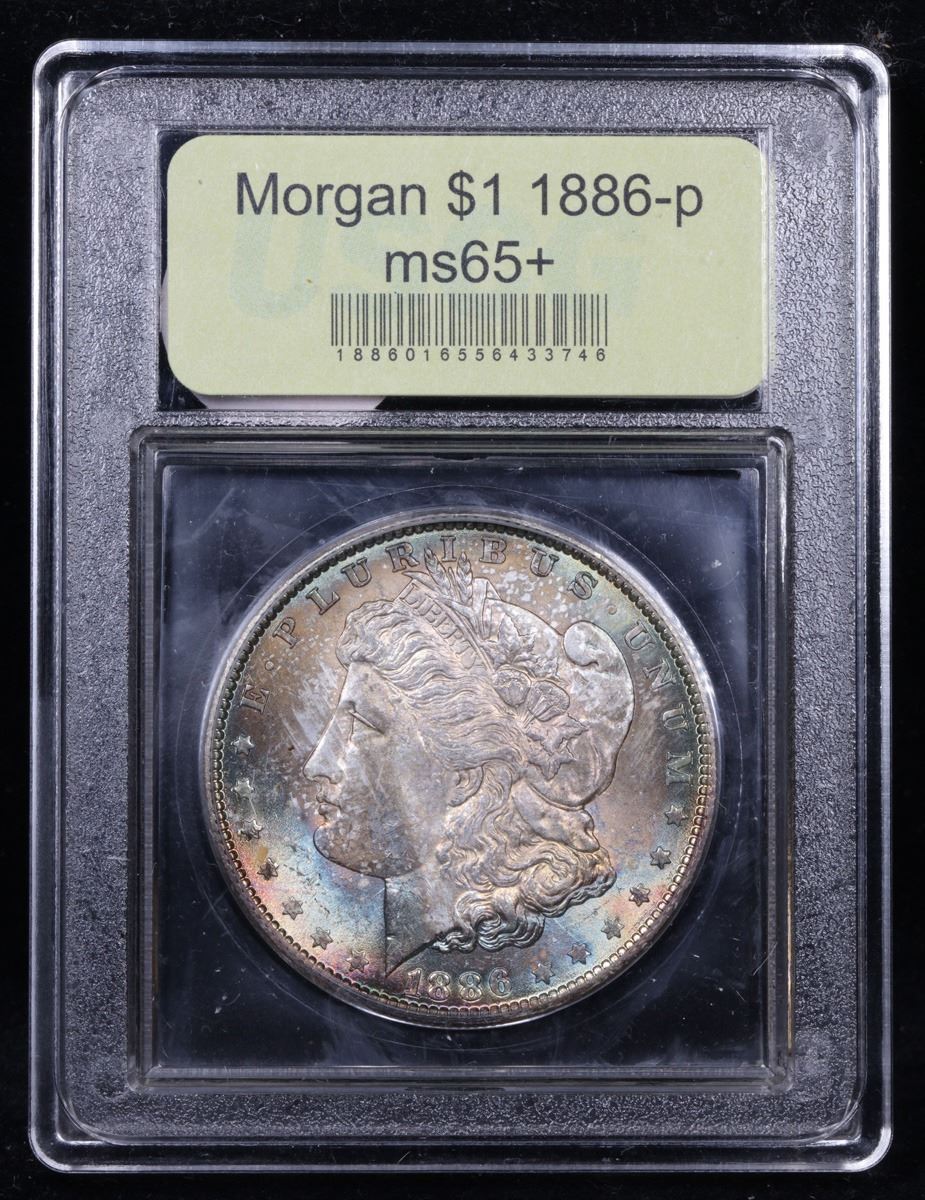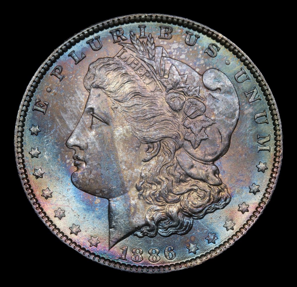 ***Auction Highlight*** 1886-p Rainbow Toned Morgan Dollar $1 Graded GEM+ Unc By USCG (fc)