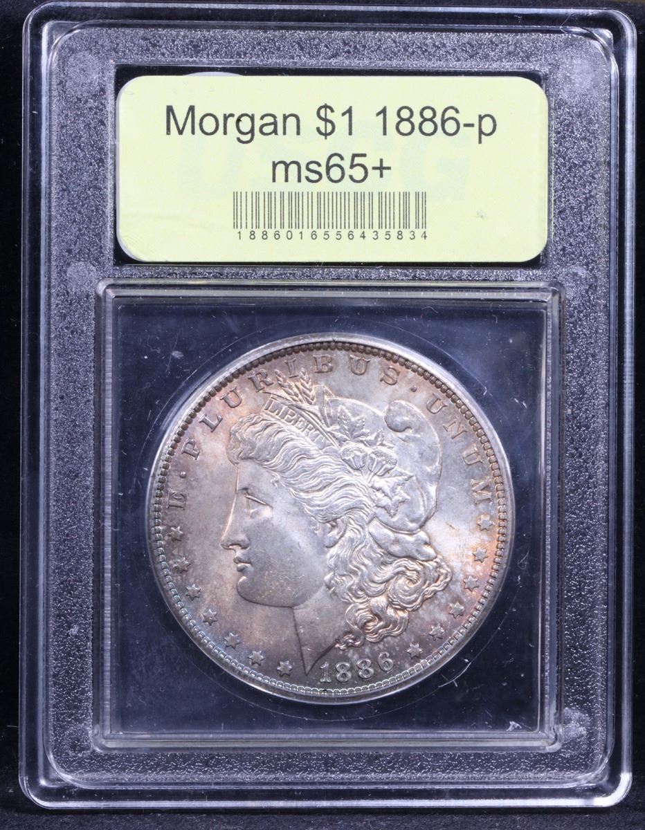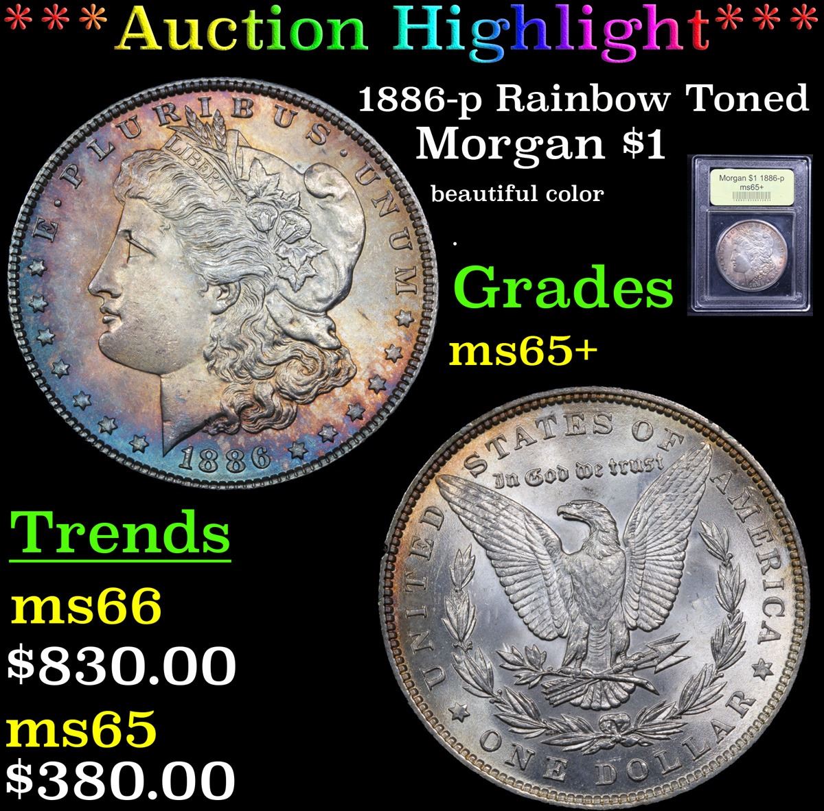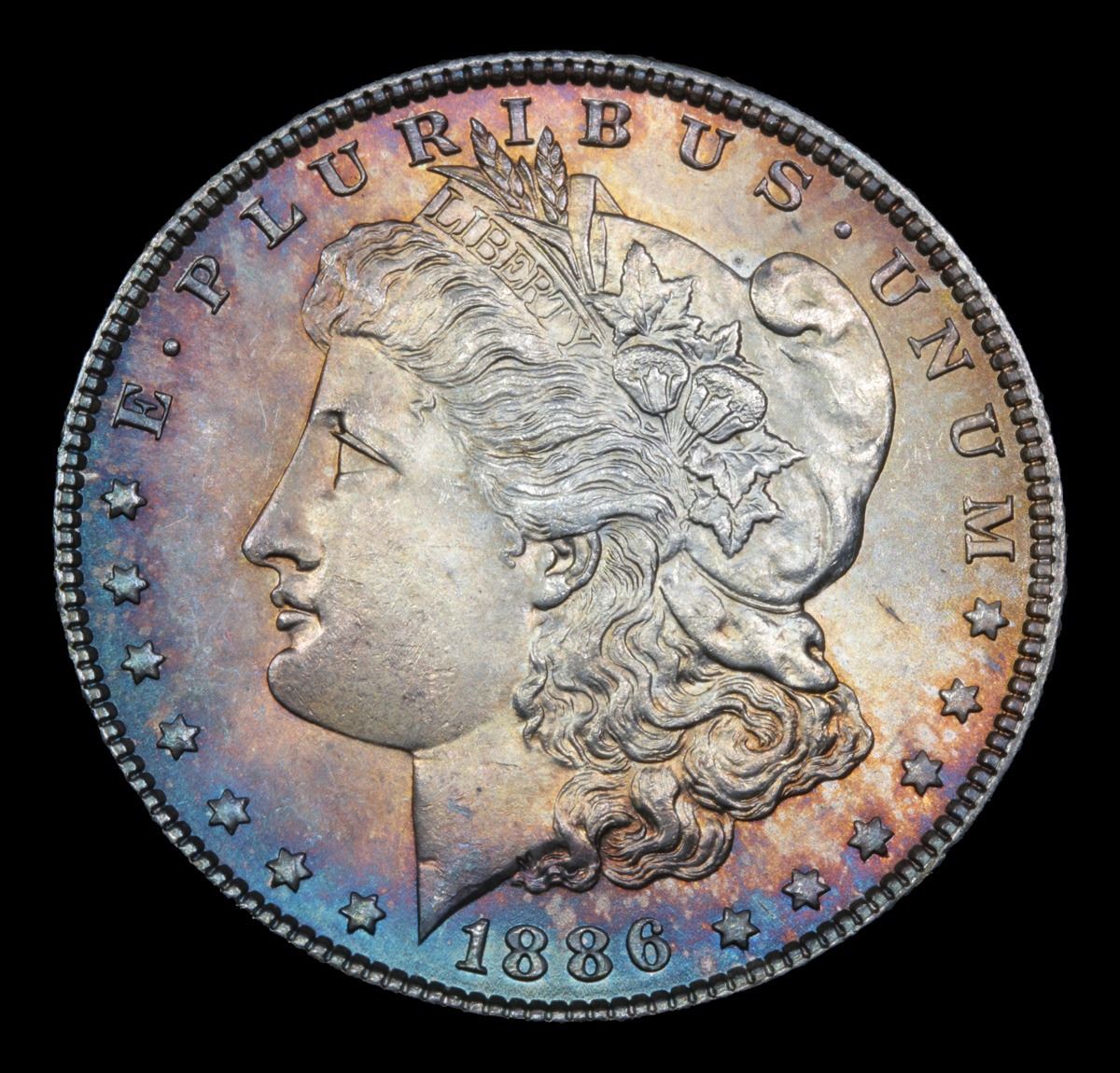 ***Auction Highlight*** 1886-p Rainbow Toned Morgan Dollar $1 Graded GEM+ Unc By USCG.