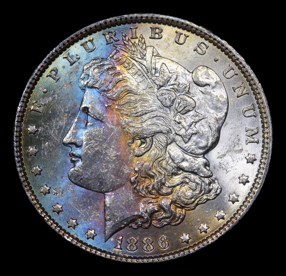 ***Auction Highlight*** 1886-p Rainbow Toned Morgan Dollar $1 Graded Select Unc By USCG (fc)