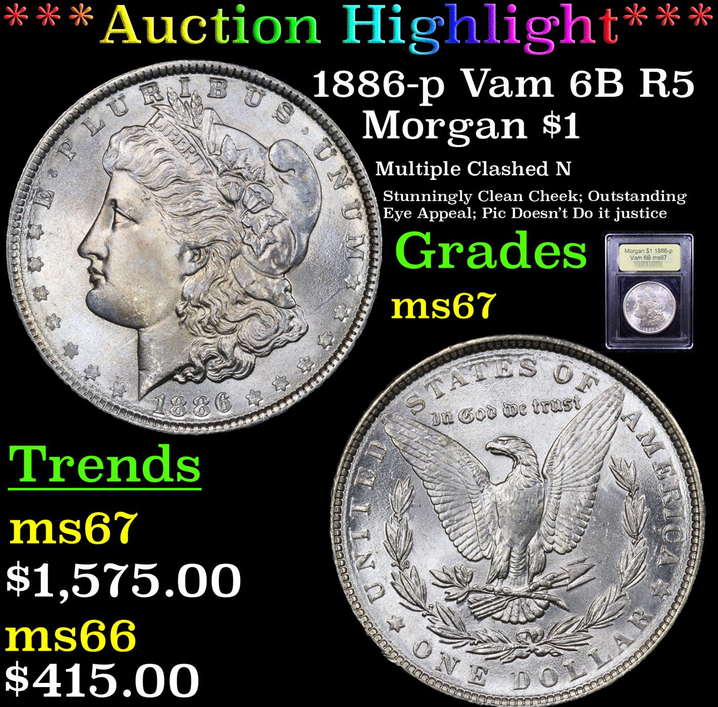 ***Auction Highlight*** 1886-p Vam 6B R5 Morgan Dollar $1 Graded GEM++ Unc By USCG (fc)