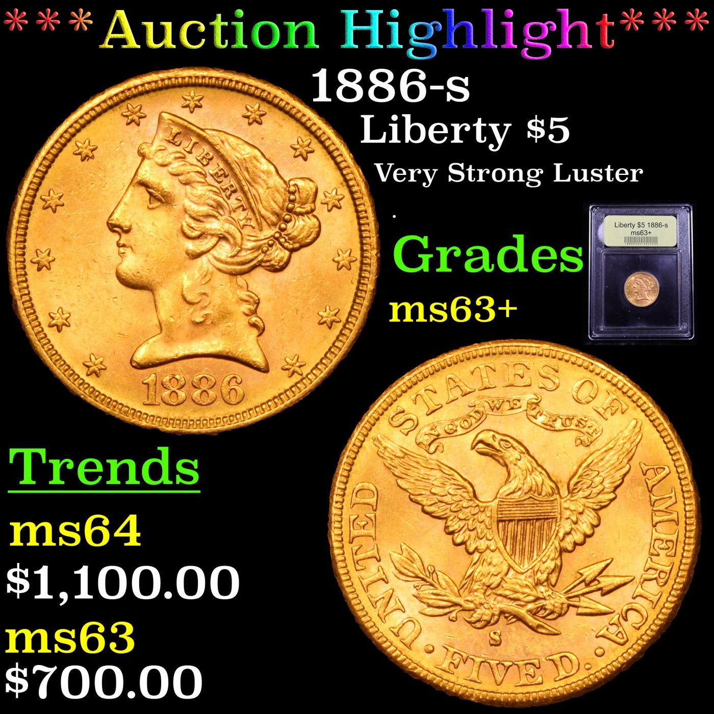 ***Auction Highlight*** 1886-s Gold Liberty Half Eagle $5 Graded Select+ Unc By USCG.