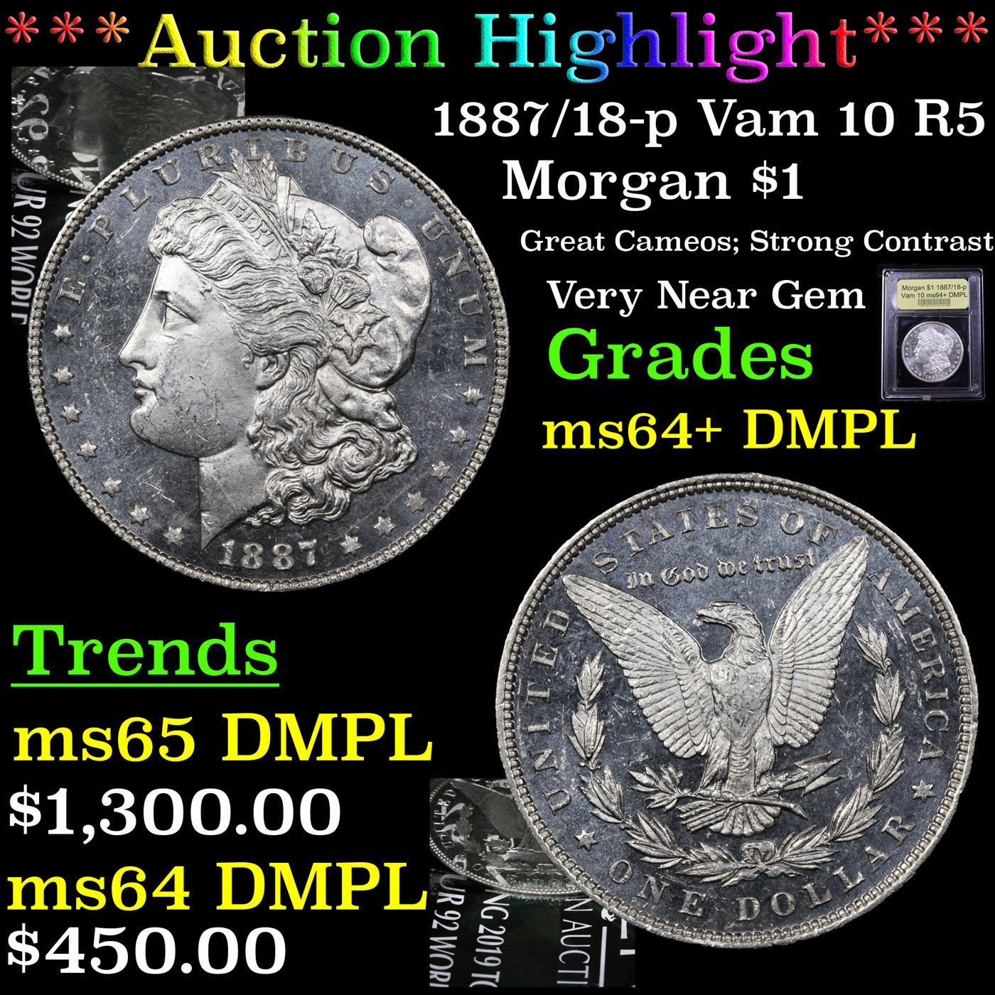 ***Auction Highlight*** 1887/18-p Vam 10 R5 Morgan Dollar $1 Graded Choice Unc+ DMPL By USCG (fc)