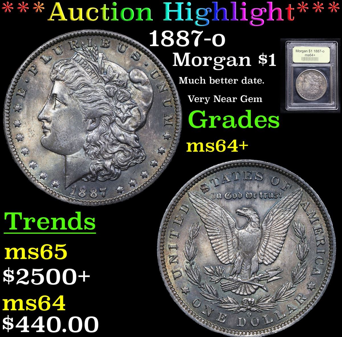 ***Auction Highlight*** 1887-o Morgan Dollar $1 Graded Choice+ Unc By USCG. Much better date. Very Near Gem