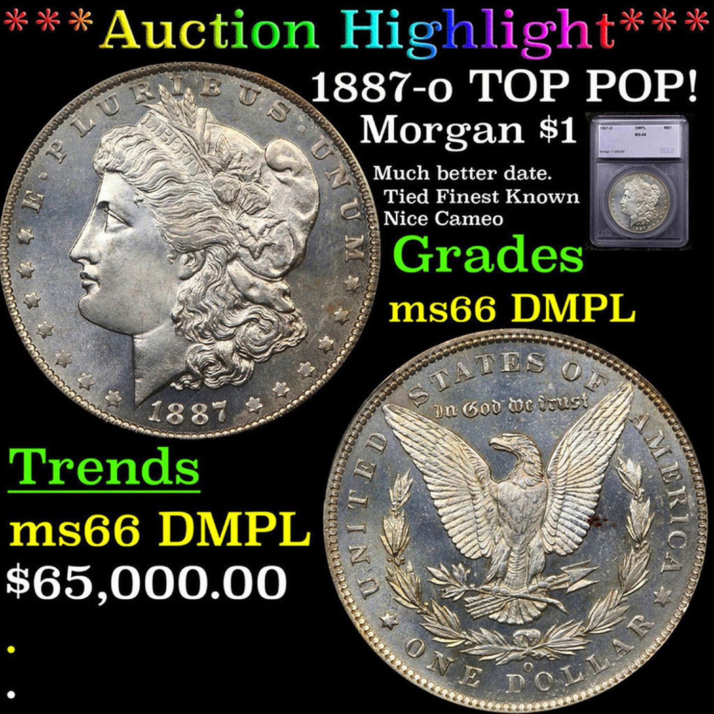 ***Auction Highlight*** 1887-o TOP POP! Morgan Dollar $1 Graded ms66 DMPL By SEGS. A Key Date's Pick, Bid to Win, Don't let it get Away, you might not find its equal Coin. I give this coin my highest recommendation