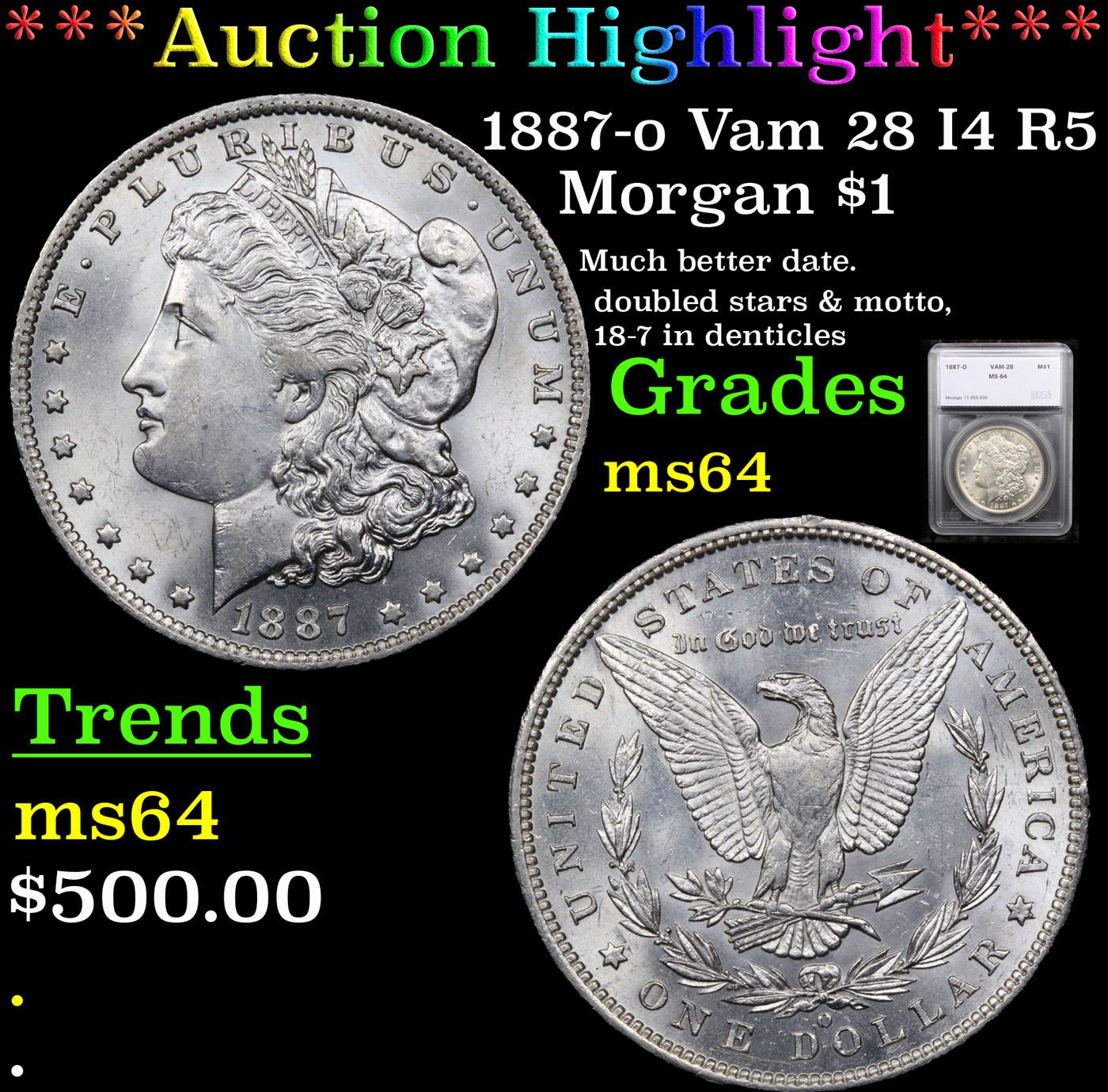 ***Auction Highlight*** 1887-o Vam 28 I4 R5 Morgan Dollar $1 Graded ms64 By SEGS.