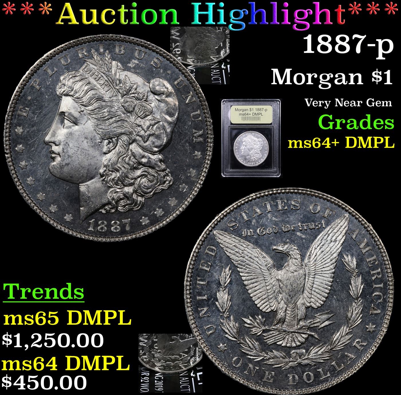 ***Auction Highlight*** 1887-p Morgan Dollar $1 Graded Choice Unc+ DMPL By USCG.