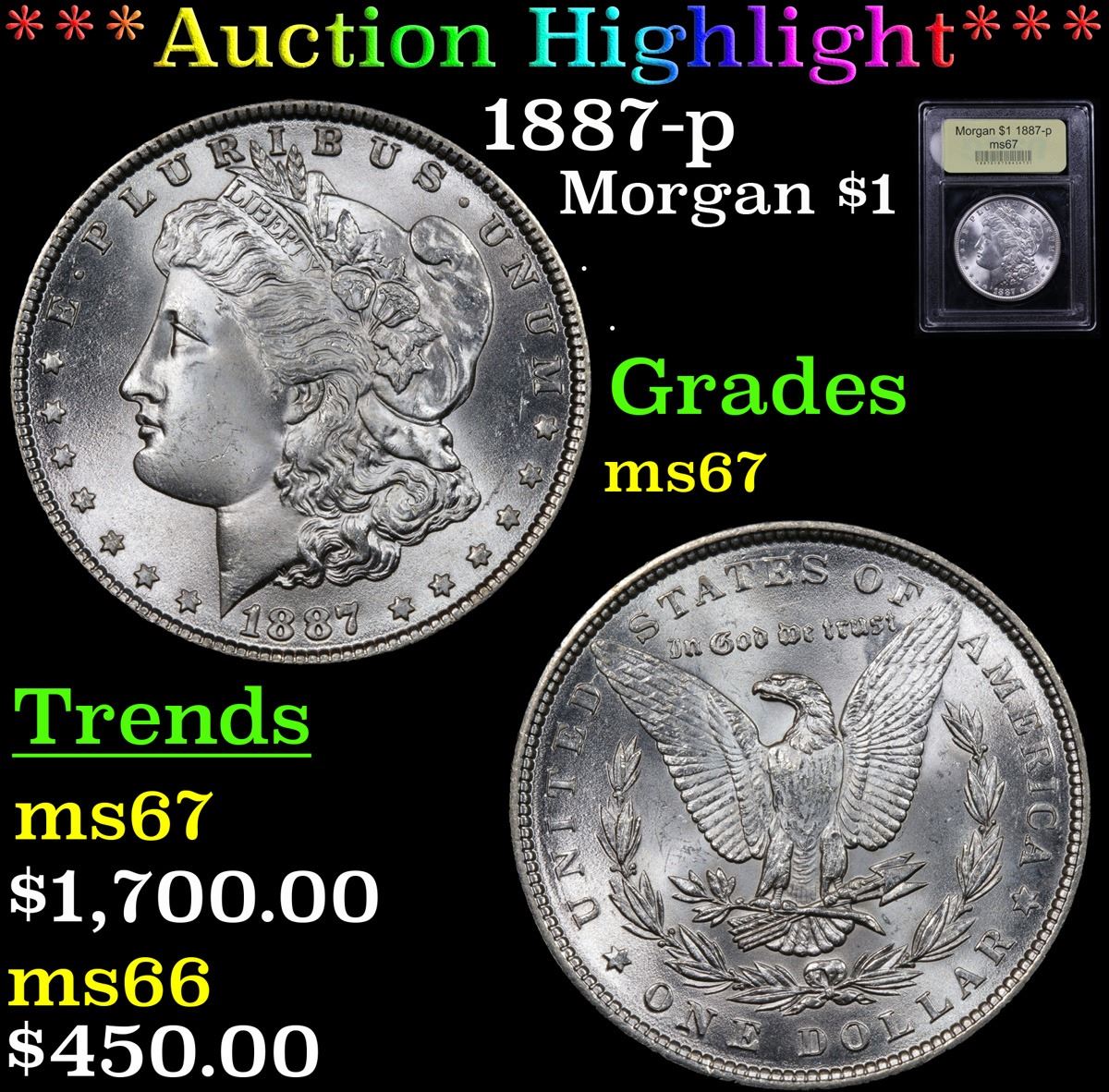 ***Auction Highlight*** 1887-p Morgan Dollar $1 Graded GEM++ Unc By USCG. A Corey's Pick, Bid to Win, Don't let it get Away Coin