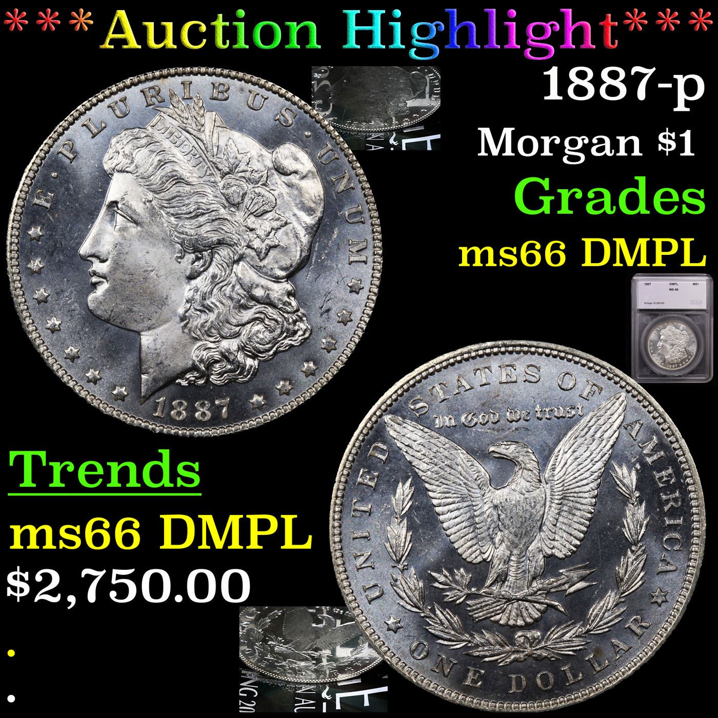 ***Auction Highlight*** 1887-p Morgan Dollar $1 Graded ms66 DMPL By SEGS.