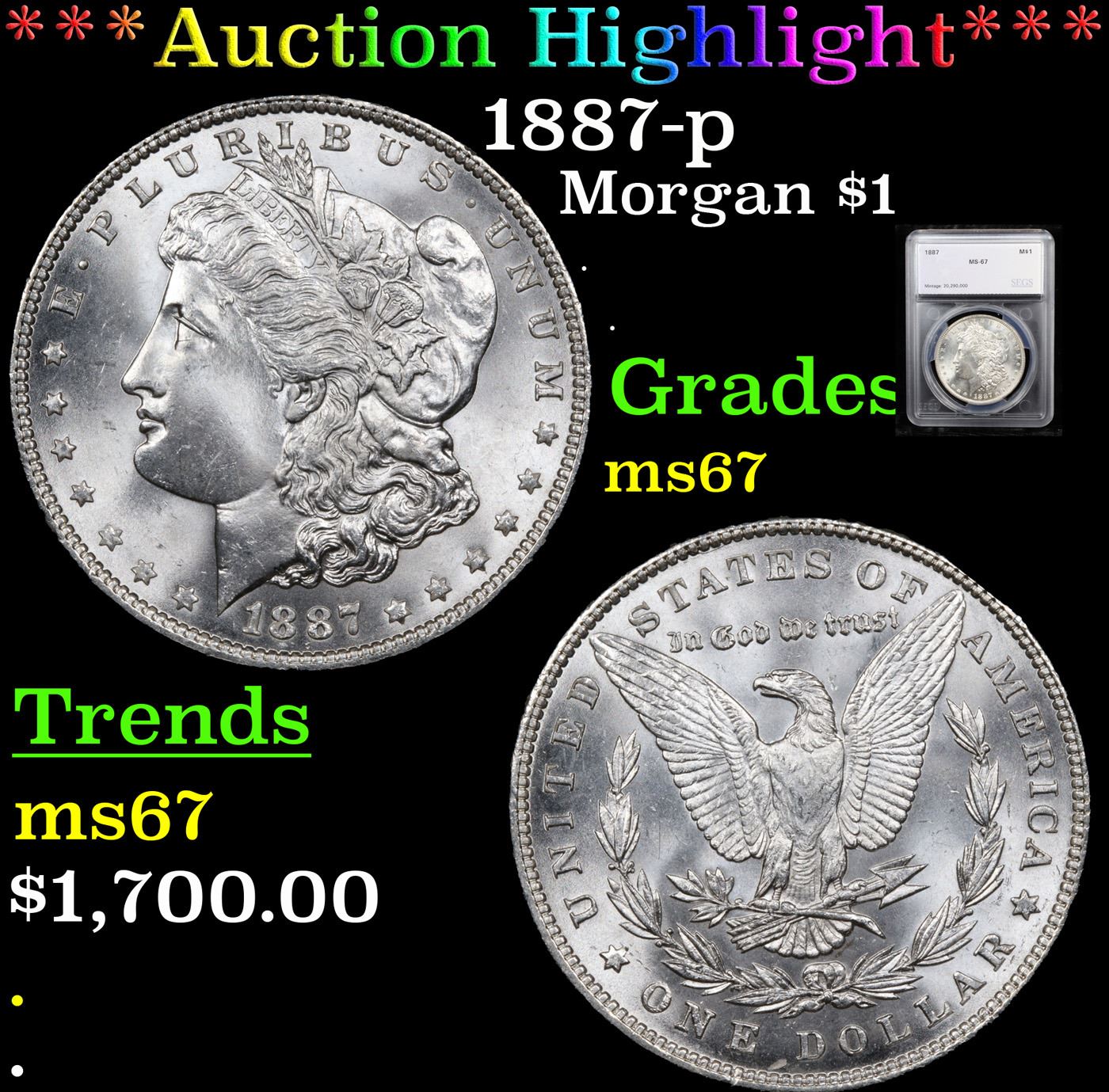 ***Auction Highlight*** 1887-p Morgan Dollar $1 Graded ms67 By SEGS. A Corey's Pick, Bid to Win, Don't let it get Away, you might not find its equal Coin