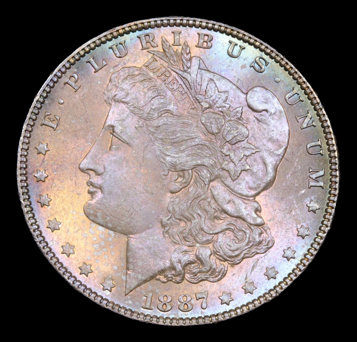 ***Auction Highlight*** 1887-p Rainbow Toned Morgan Dollar $1 Graded GEM++ Unc By USCG (fc)