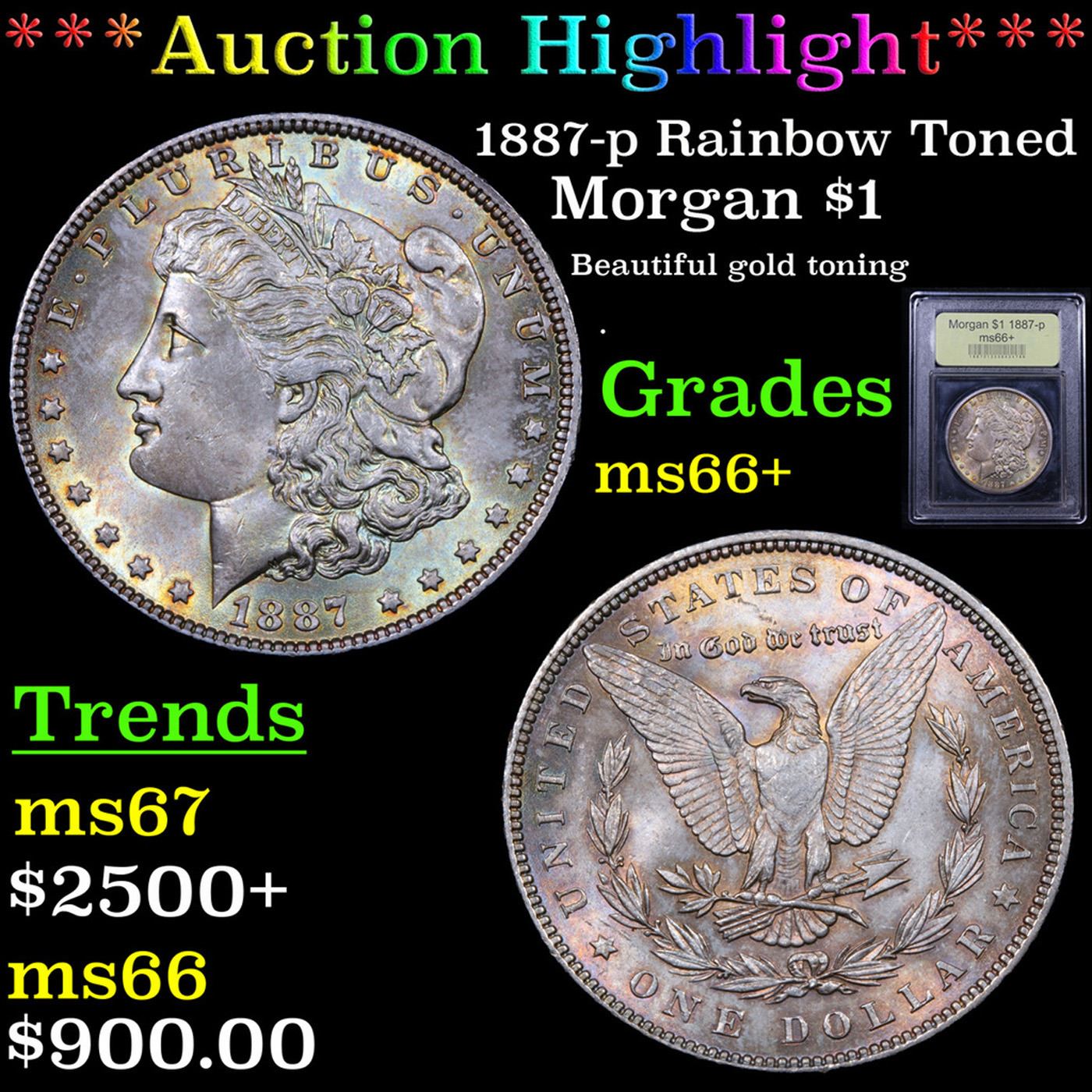 ***Auction Highlight*** 1887-p Rainbow Toned Morgan Dollar $1 Graded GEM++ Unc By USCG. A Corey's Pick, Bid to Win, Don't let it get Away Coin