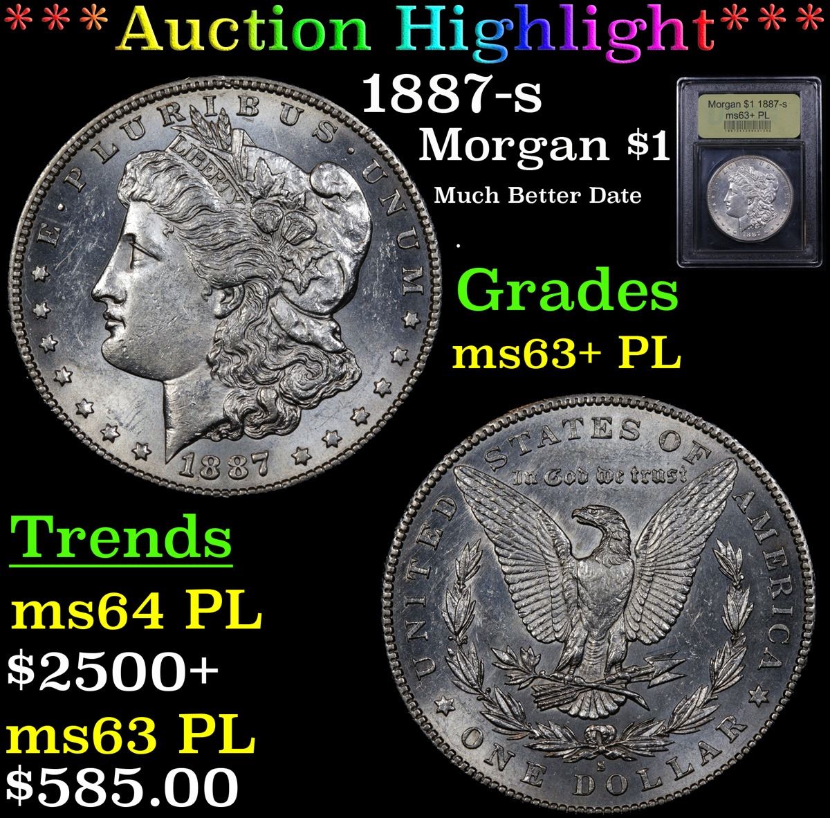***Auction Highlight*** 1887-s Morgan Dollar $1 Graded Select Unc+ PL By USCG. A Corey's Pick, Bid to Win, Don't let it get Away Coin