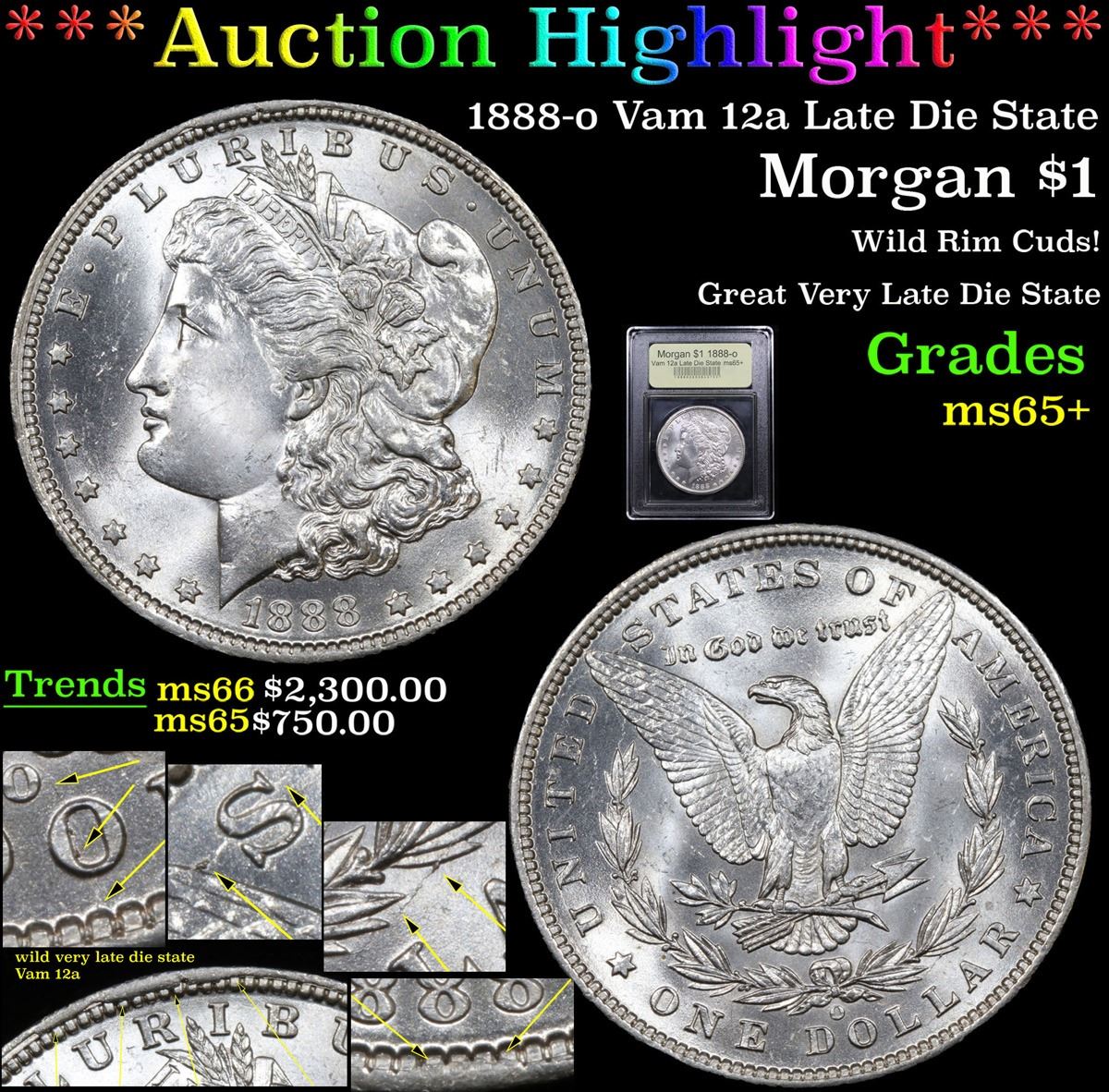 ***Auction Highlight*** 1888-o Vam 12a Late Die State Wild Rim Cuds! Great Very Late Die State Morgan Dollar $1 Graded GEM+ Unc By USCG.         A Corey's Pick, Bid to Win, Don't let it get Away Coin