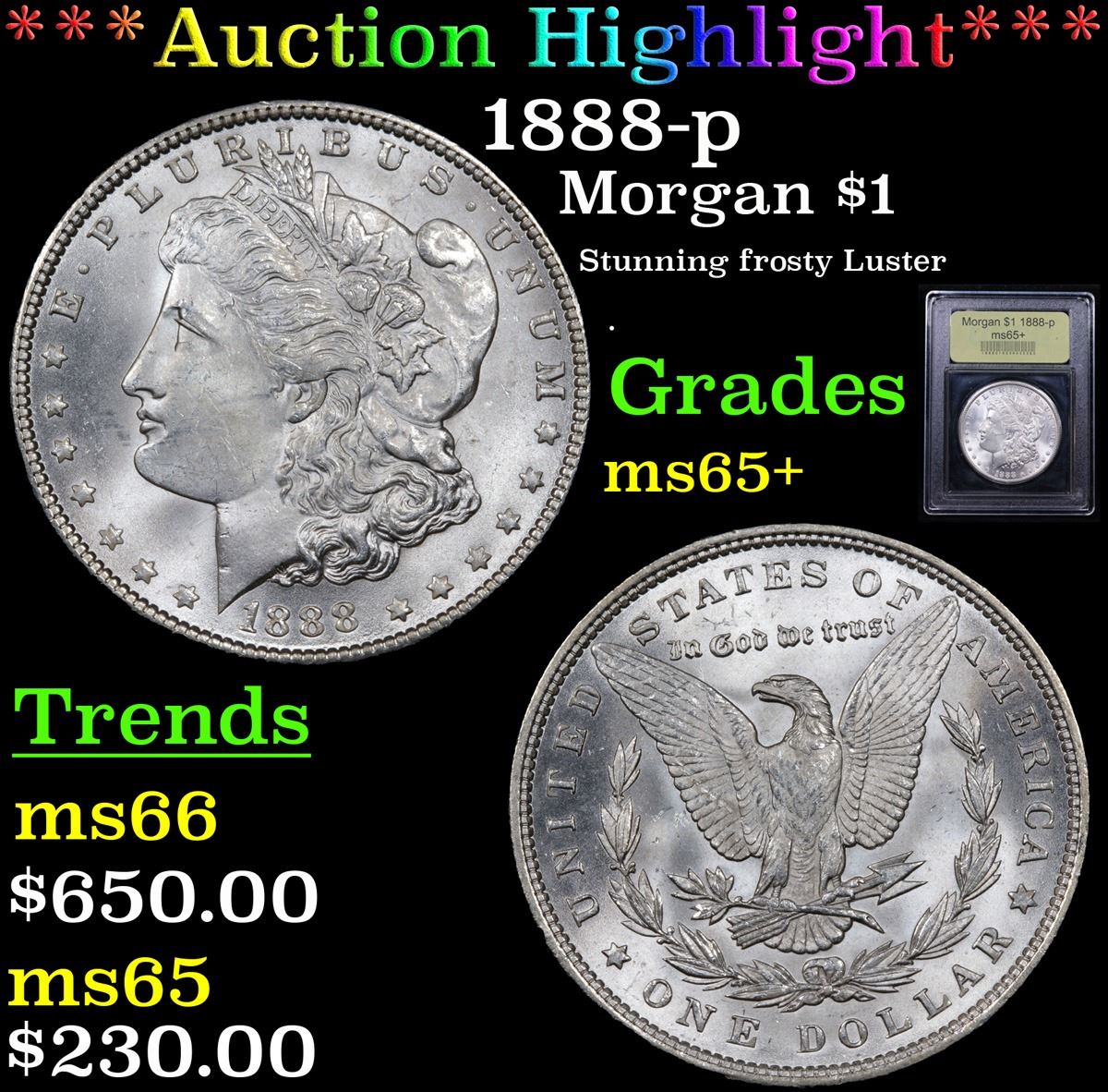 ***Auction Highlight*** 1888-p Morgan Dollar $1 Graded GEM+ Unc By USCG. A Corey's Pick, Bid to Win Coin