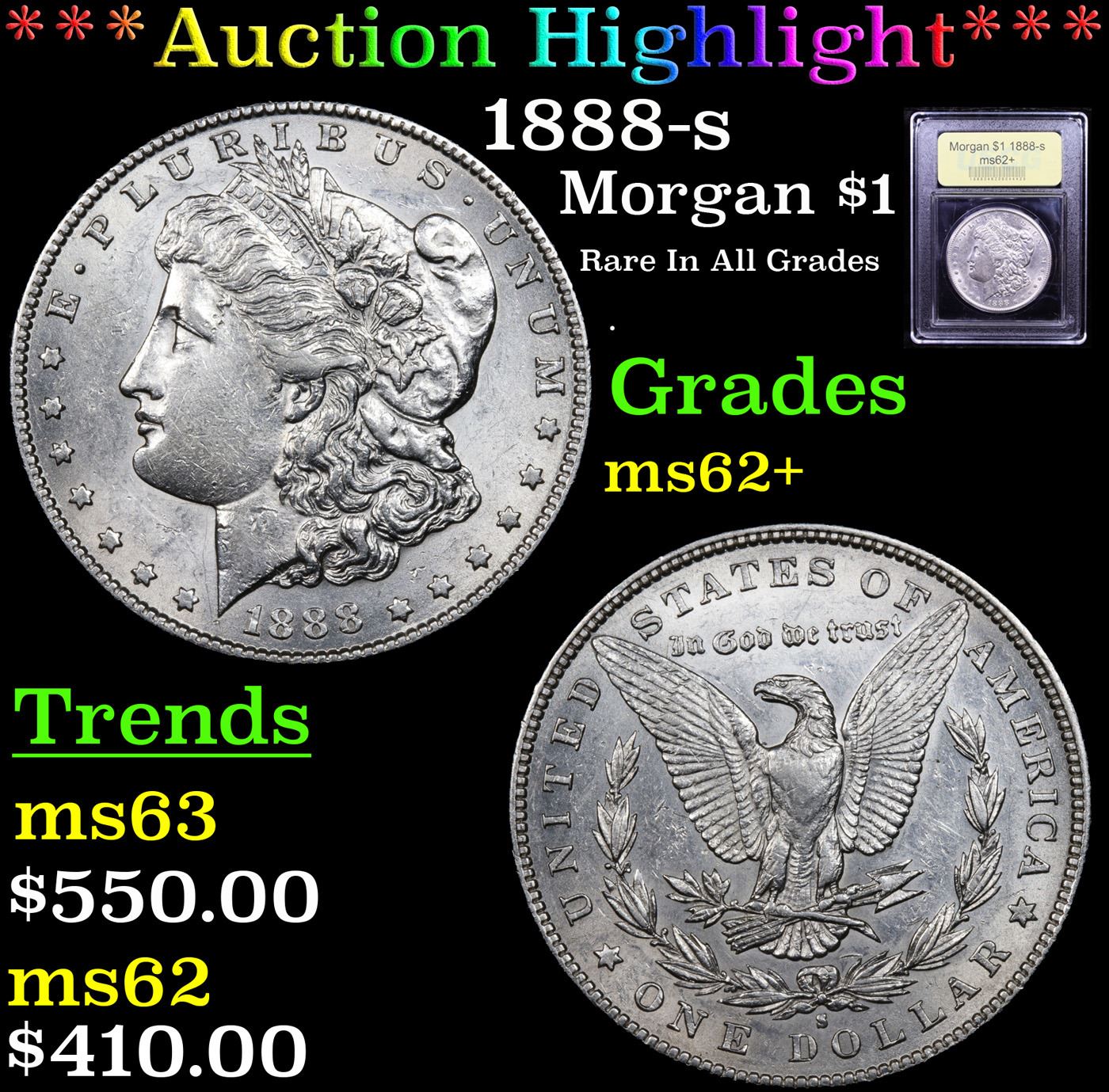 ***Auction Highlight*** 1888-s Morgan Dollar $1 Graded Select Unc By USCG. A Corey's Pick, Bid to Win Coin