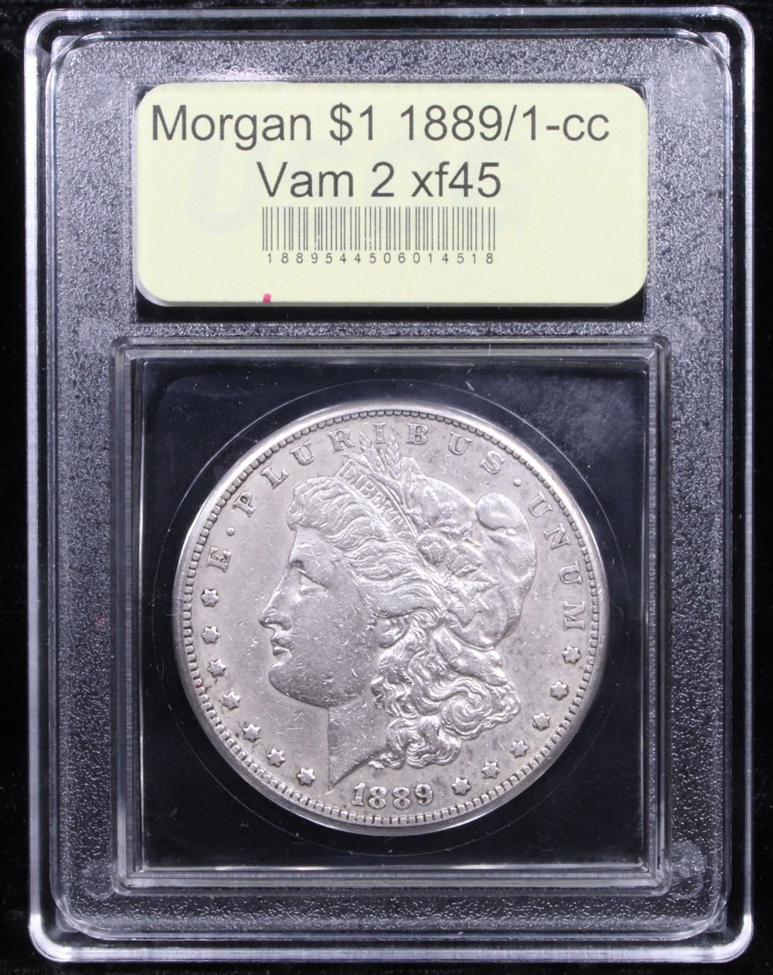 ***Auction Highlight*** 1889/1-cc Vam 2 R5 Morgan Dollar $1 Graded xf+ By USCG. A collectible Choice XF example of this key Carson City Morgan dollar. The slate-gray surfaces appear original, highlighted by tiny glimpses of luster in the most protected areas of the fields. Wear is light, and the surfaces are attractively smooth for the grade. High-end circulated pieces such as this are in high demand among date and mintmark collectors of this popular series. I have included a picture on a PCGS xf45 for comparison. I believe ours shows the exact same amount of wear and is an accurate xf45. LOOK for yourself at the comparison pictures. Good luck in securing this rarity! A Corey's Pick, Bid to Win, Don't let it get Away, you might not find its equal Coin. I give this coin my highest recommendation