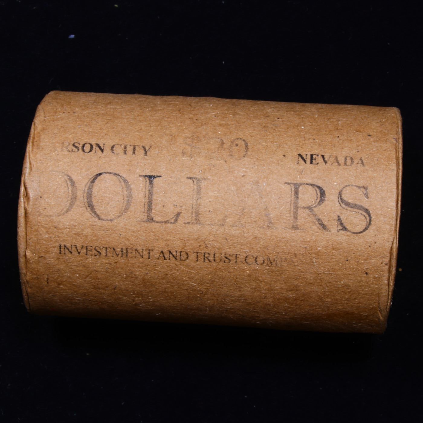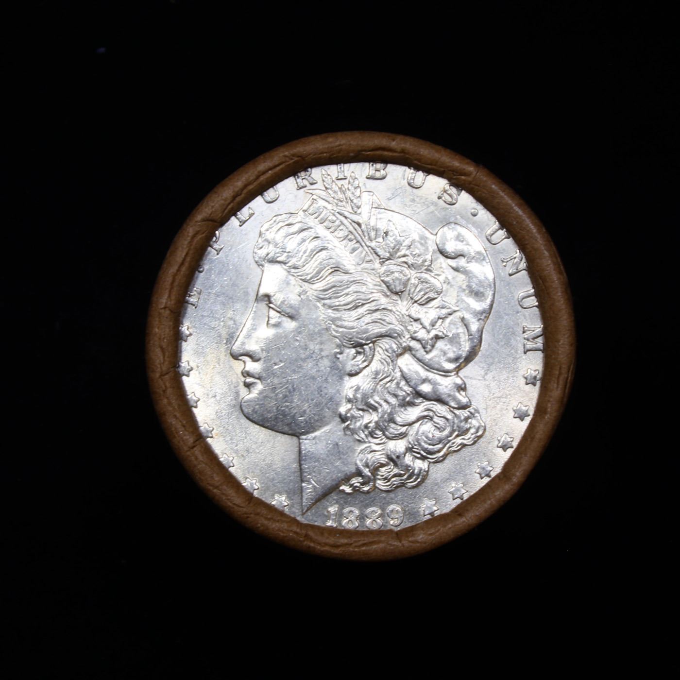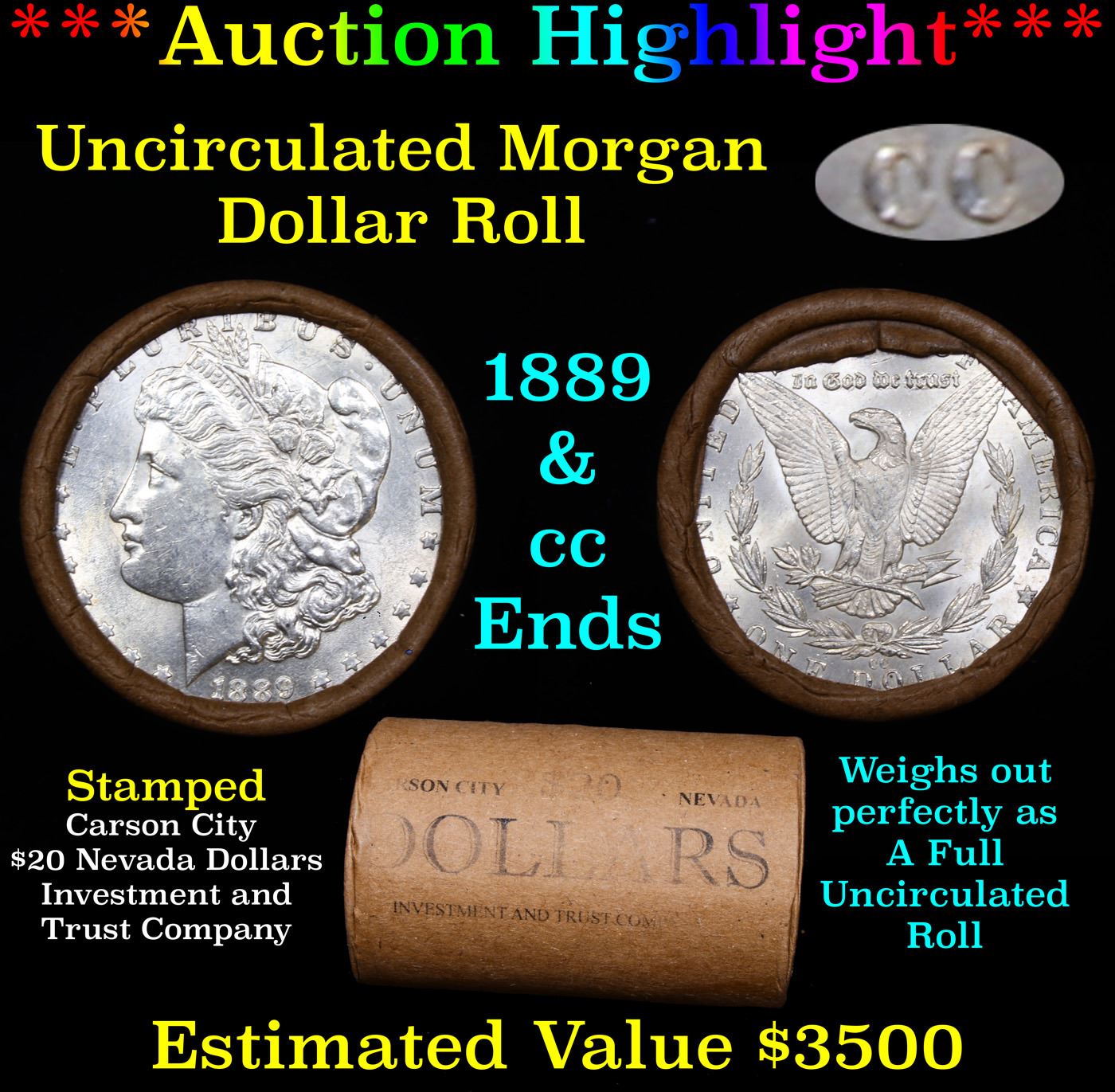 ***Auction Highlight*** 1889 & CC Uncirculated Morgan Dollar Shotgun Roll. Uncirculated Morgan Dollar Roll, Superb Ends, Carson City, Nevada Investment and Trust Co wrapper. Weighs Perfectly as a Uncirculated Roll.