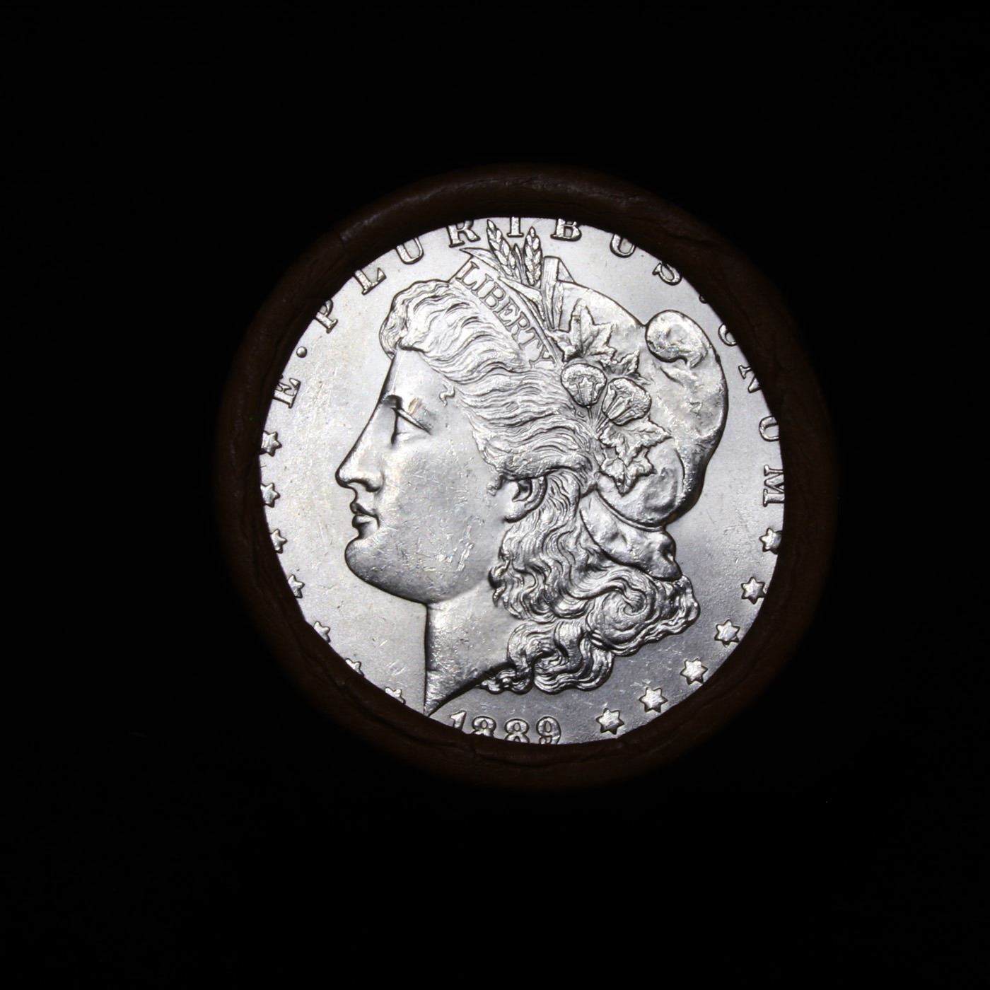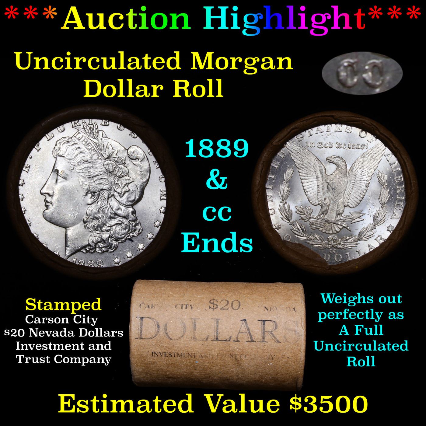 ***Auction Highlight*** 1889 & CC Uncirculated Morgan Dollar Shotgun Roll.        Uncirculated Morgan Dollar Roll, Superb Ends, Carson City, Nevada Investment and Trust Co wrapper. Weighs Perfectly as a Uncirculated Roll.