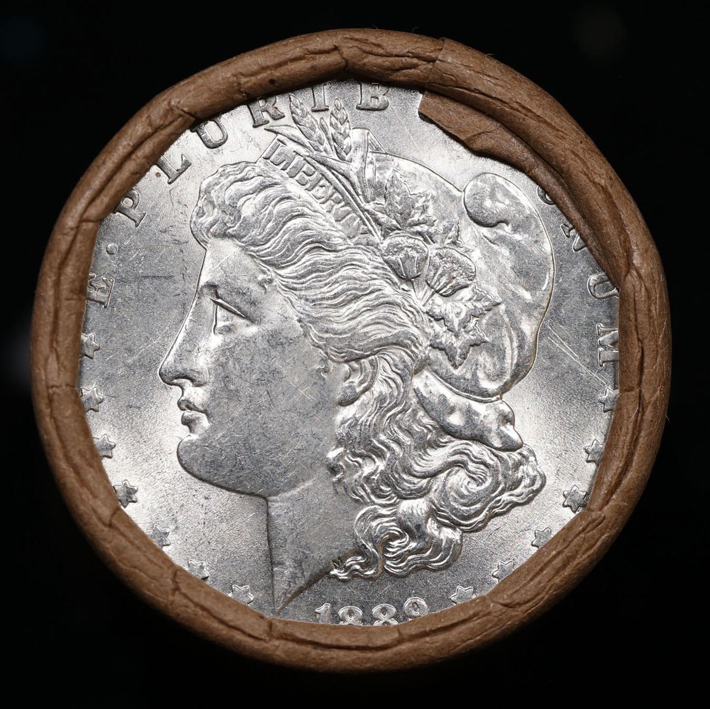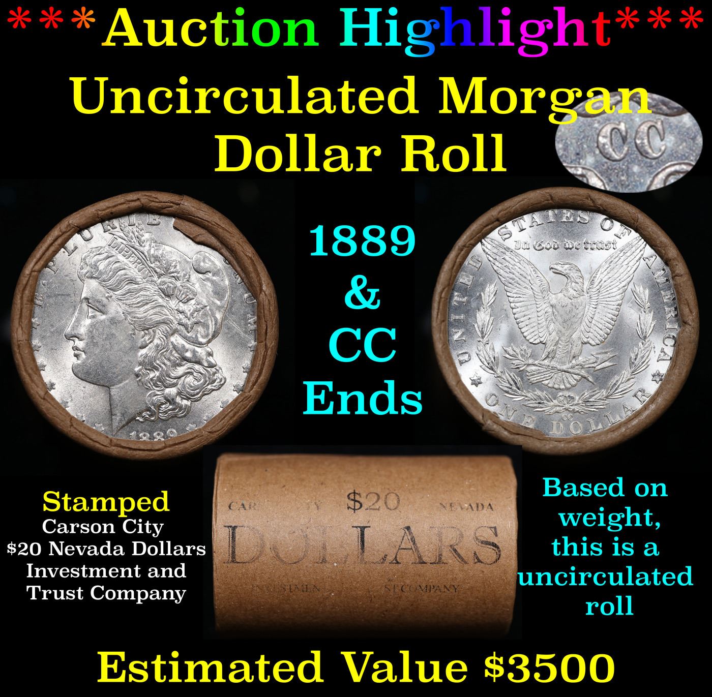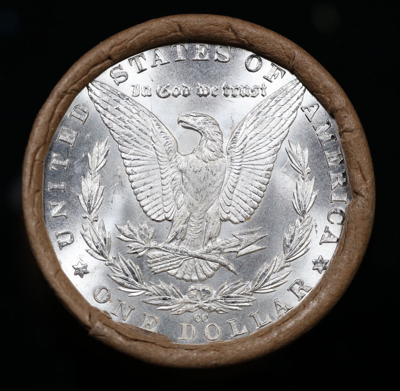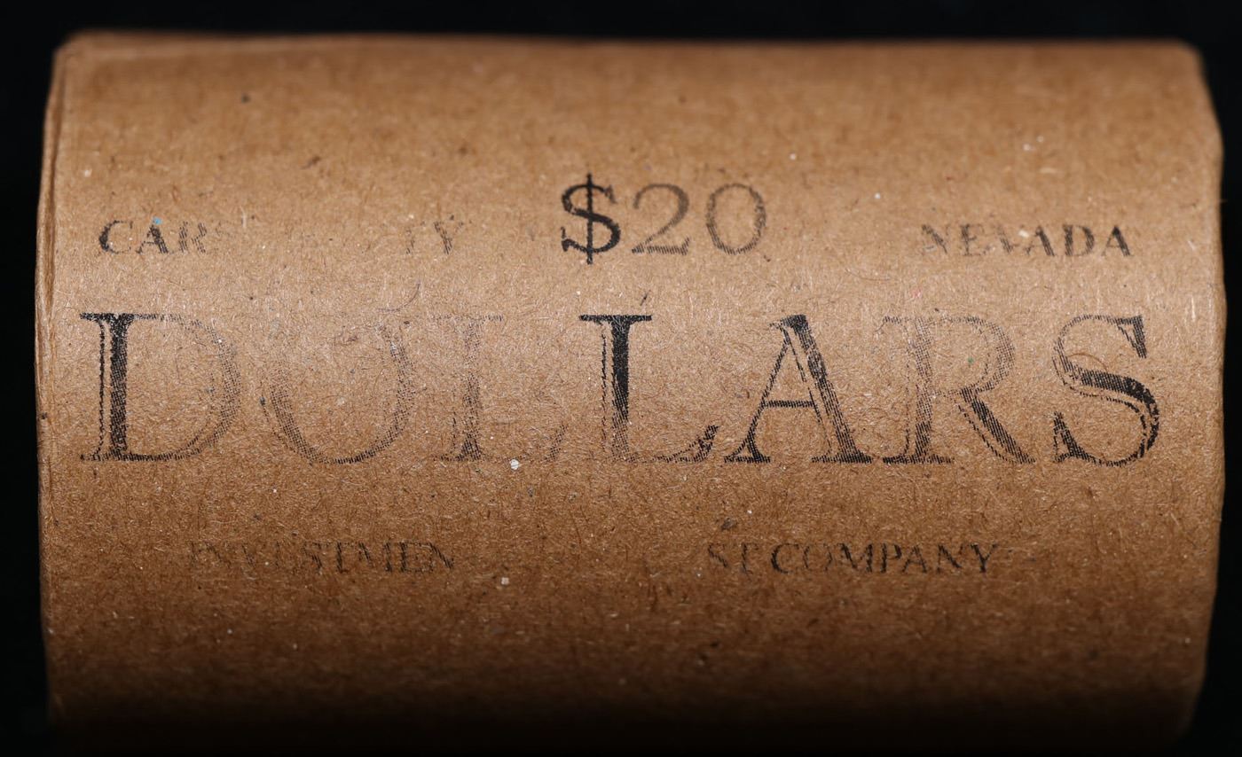 ***Auction Highlight*** 1889 & CC Uncirculated Morgan Dollar Shotgun Roll. Uncirculated Morgan Dollar Roll, Superb Ends, Carson City, Nevada Investment and Trust Co wrapper. Weighs Perfectly as a Uncirculated Roll.