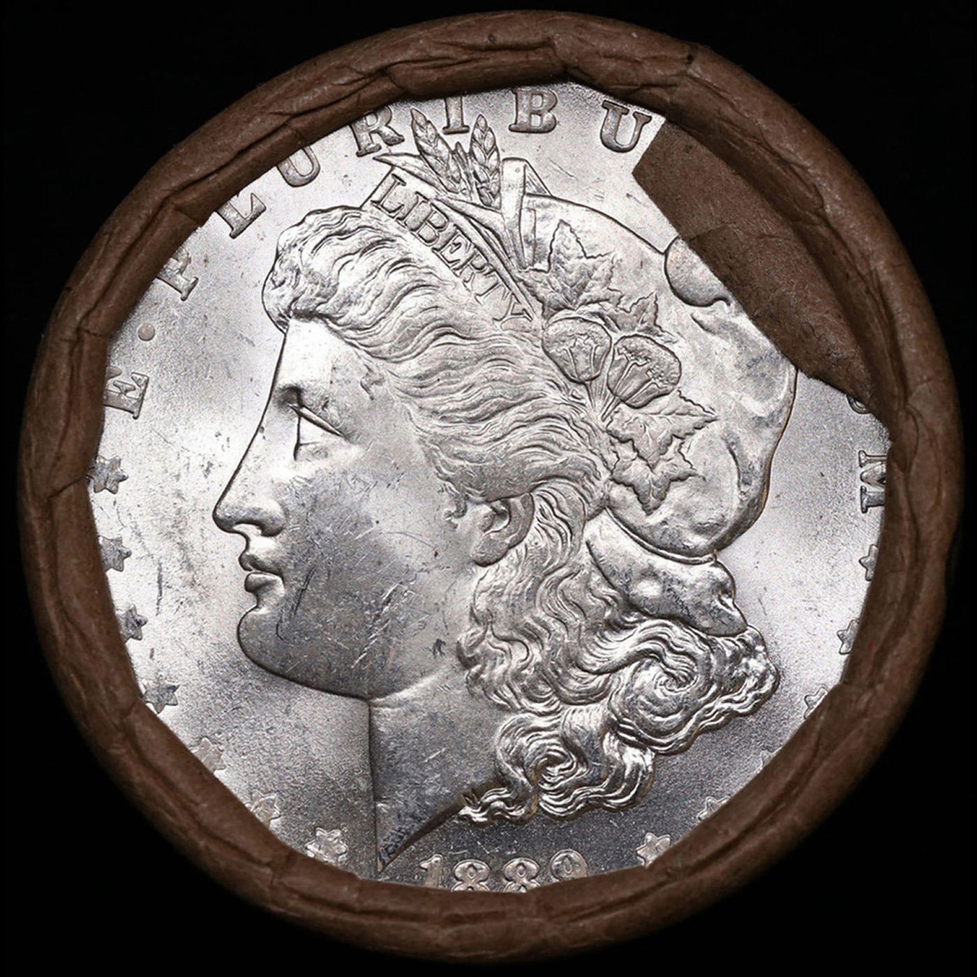 ***Auction Highlight*** 1889 & CC Uncirculated Morgan Dollar Shotgun Roll. Uncirculated Morgan Dollar Roll, Superb Ends, Carson City, Nevada Investment and Trust Co wrapper. Weighs Perfectly as a Uncirculated Roll.