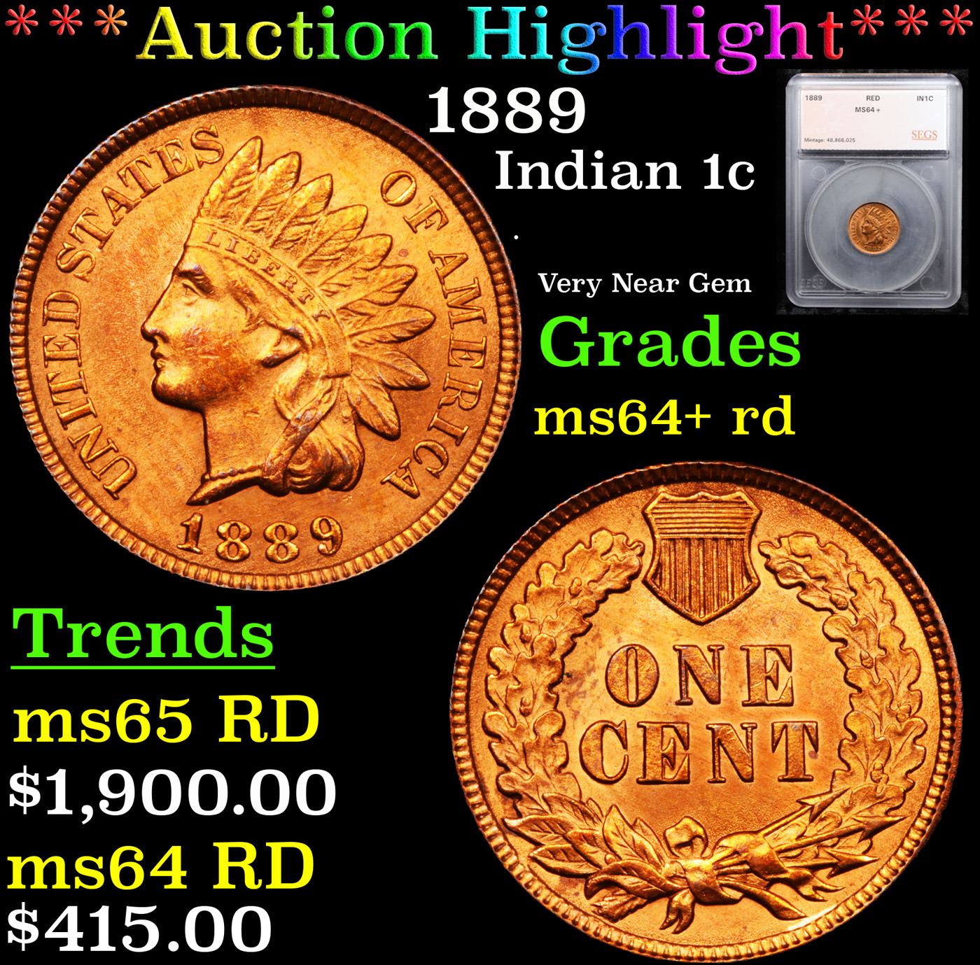 ***Auction Highlight*** 1889 Indian Cent 1c Graded ms64+ rd By SEGS. A Corey's Pick, Bid to Win Coin