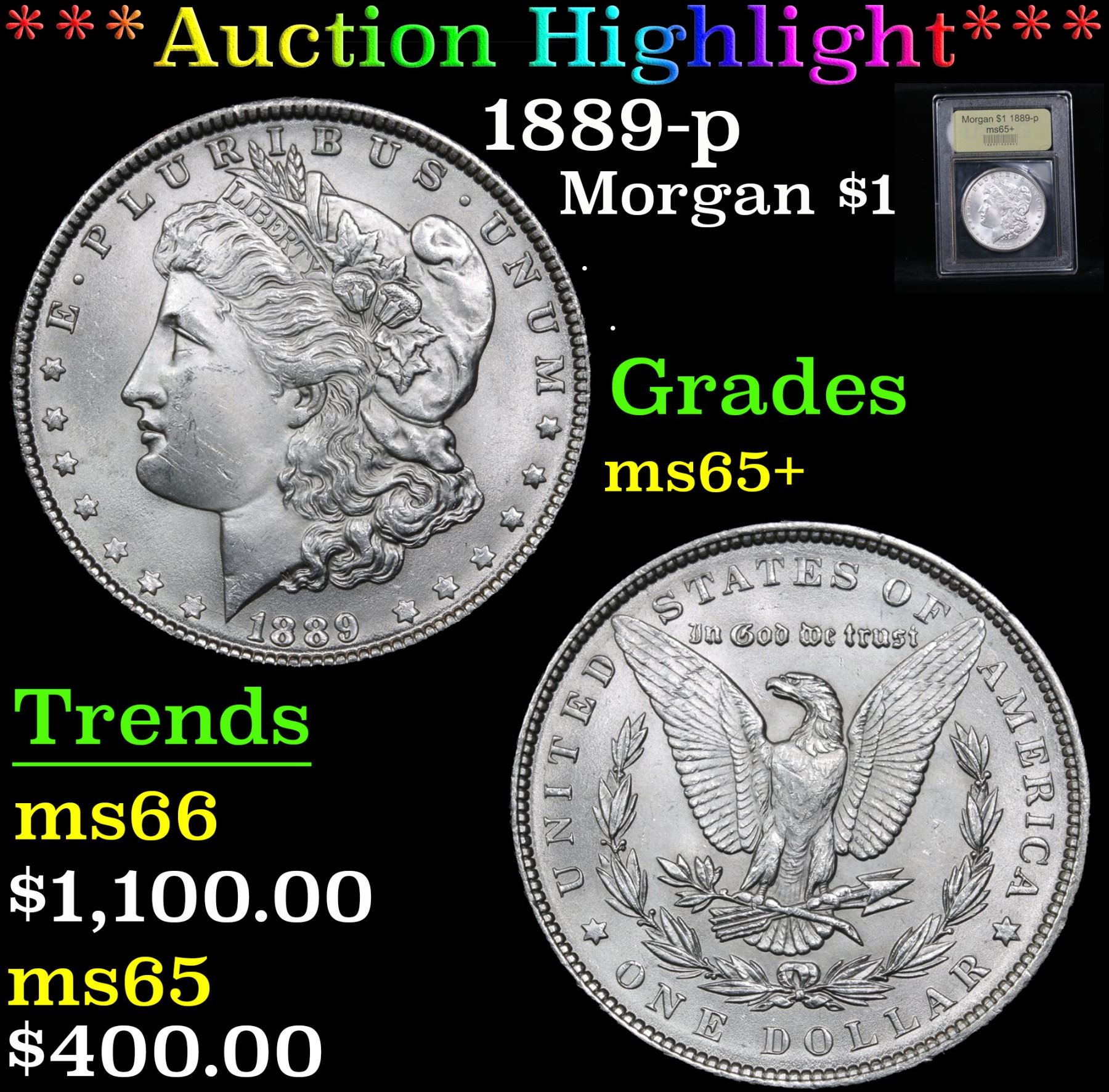 ***Auction Highlight*** 1889-p . . Morgan Dollar $1 Graded GEM+ Unc By USCG. A Corey's Pick, Bid to Win, Don't let it get Away Coin