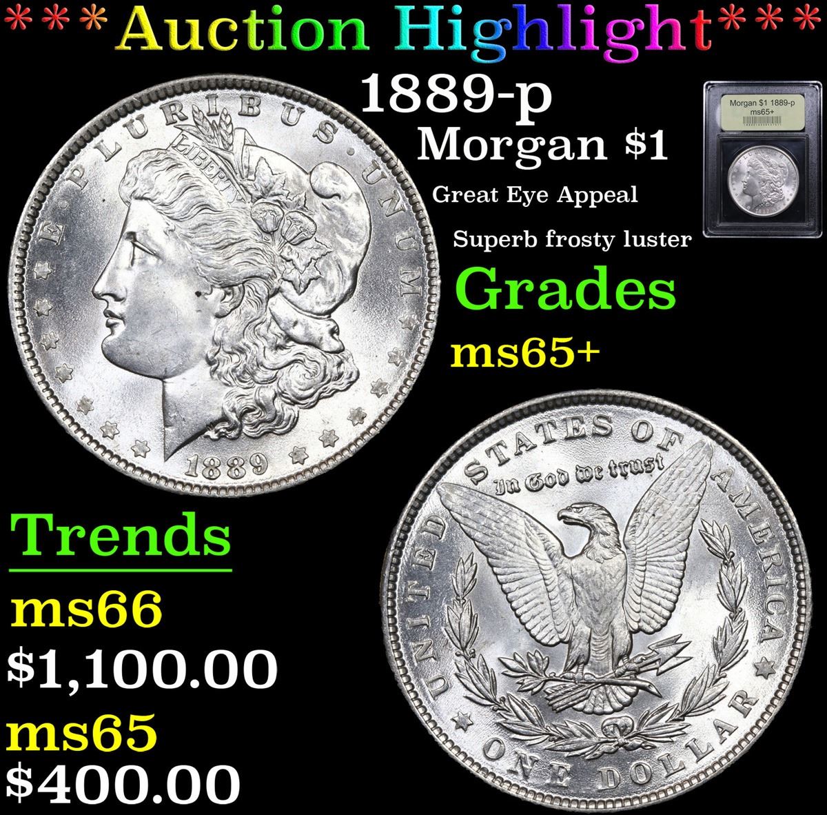 ***Auction Highlight*** 1889-p Great Eye Appeal Superb frosty luster Morgan Dollar $1 Graded GEM+ Unc By USCG. A Corey's Pick