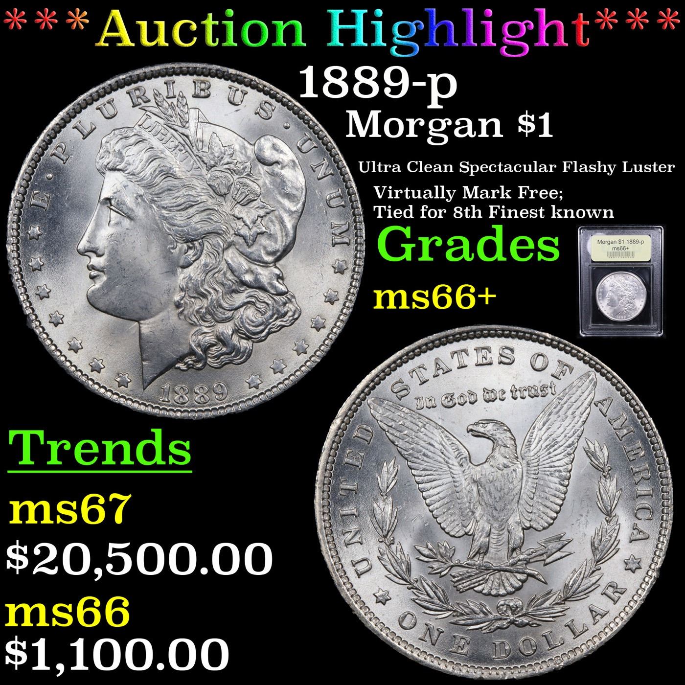***Auction Highlight*** 1889-p Morgan Dollar $1 Graded GEM++ Unc By USCG. This smartly impressed, fully struck example also possesses outstanding luster quality with a smooth, frosty texture throughout. Significant condition rarity for this otherwise plentiful Philadelphia Mint Morgan dollar issue. Lovely! A Corey's Pick, Bid to Win, Don't let it get Away, you might not find its equal Coin. I give this coin my highest recommendation