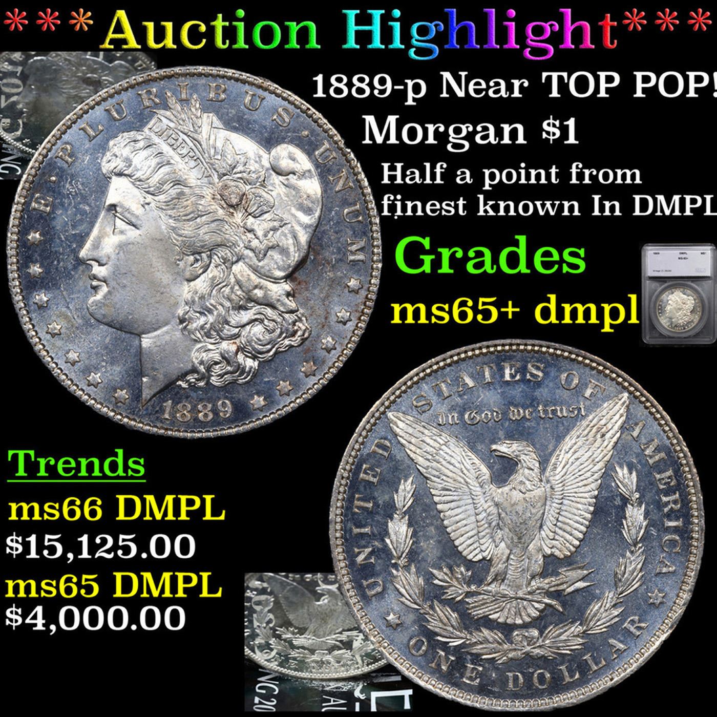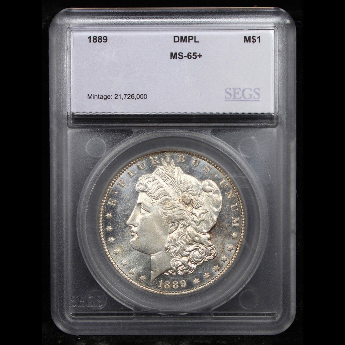 ***Auction Highlight*** 1889-p Near TOP POP! Morgan Dollar 1 Graded ms65+ dmpl By SEGS. A Corey's Pick, Bid to Win, Don't let it get Away, you might not find its equal Coin. I give this coin my highest recommendation