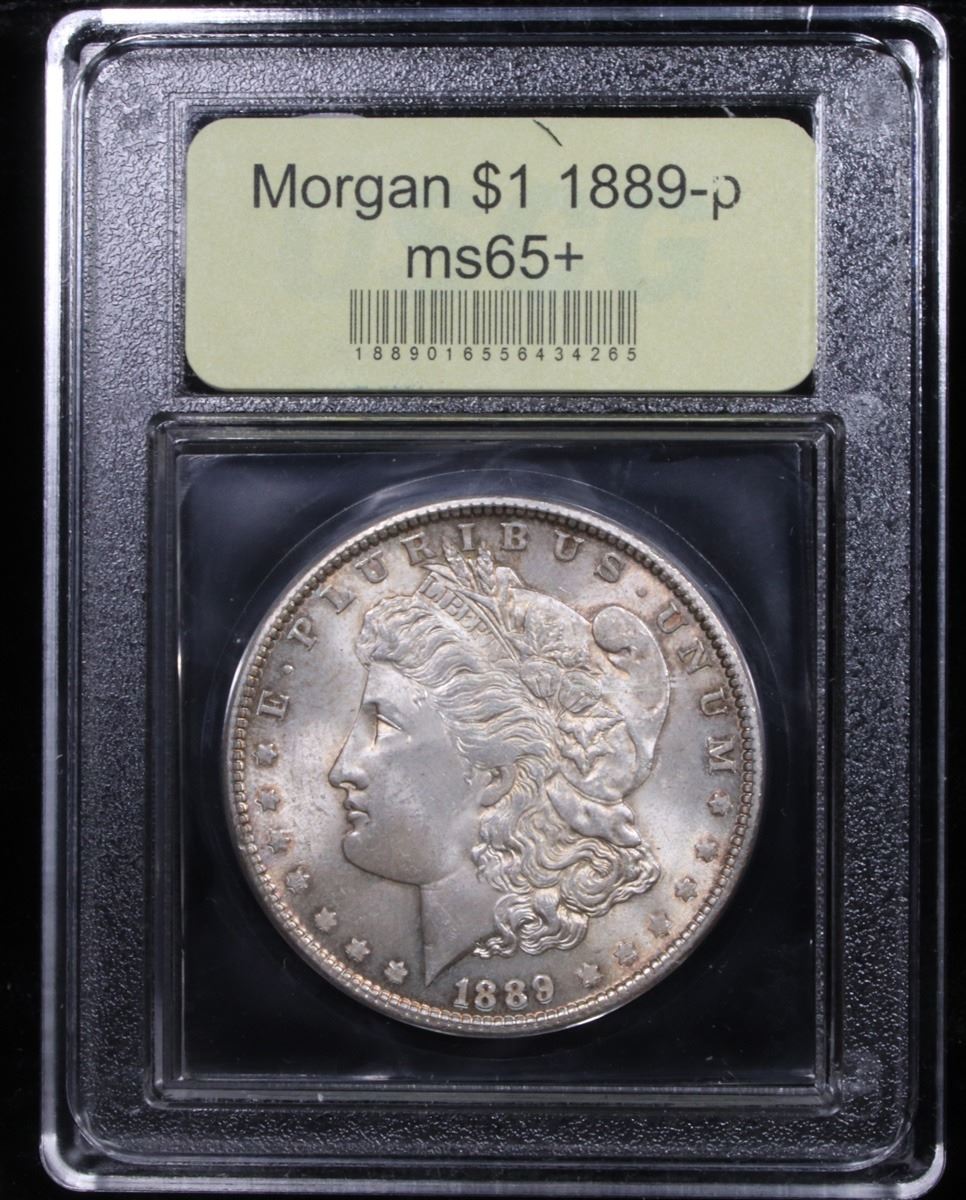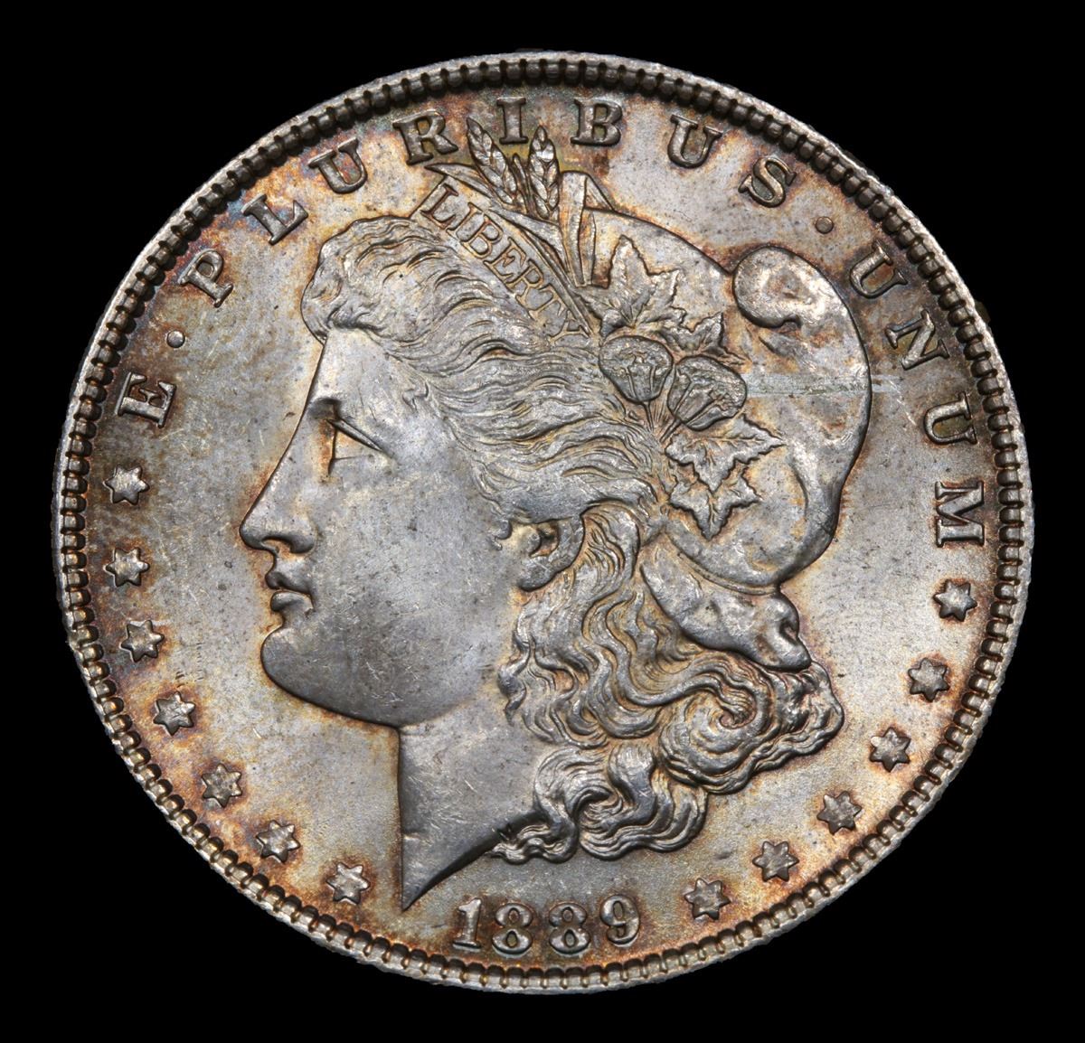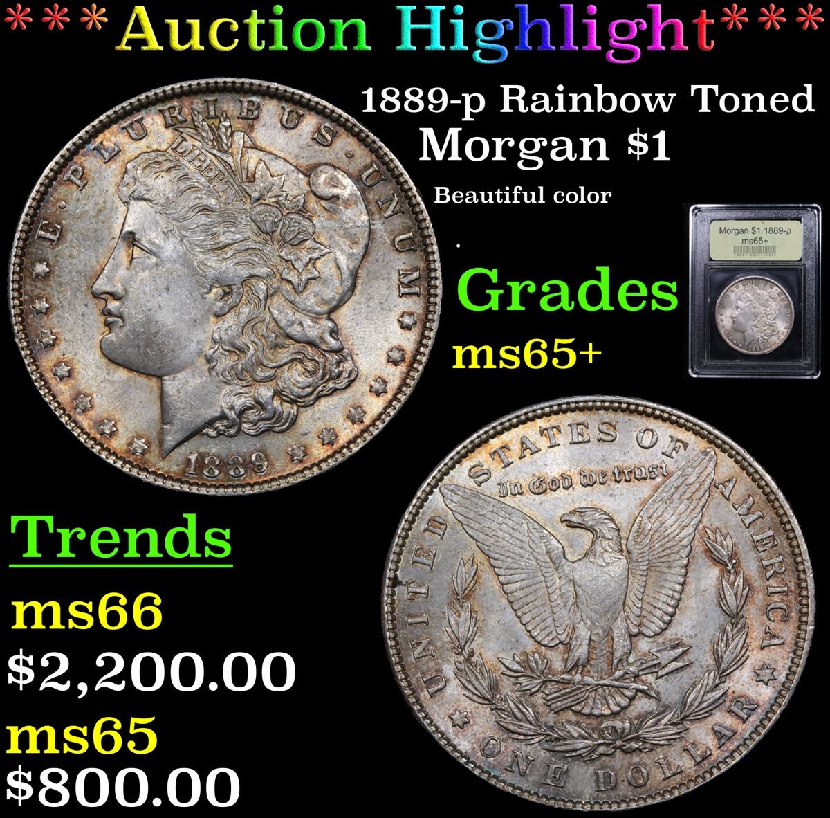 ***Auction Highlight*** 1889-p Rainbow Toned Morgan Dollar $1 Graded GEM+ Unc By USCG (fc)