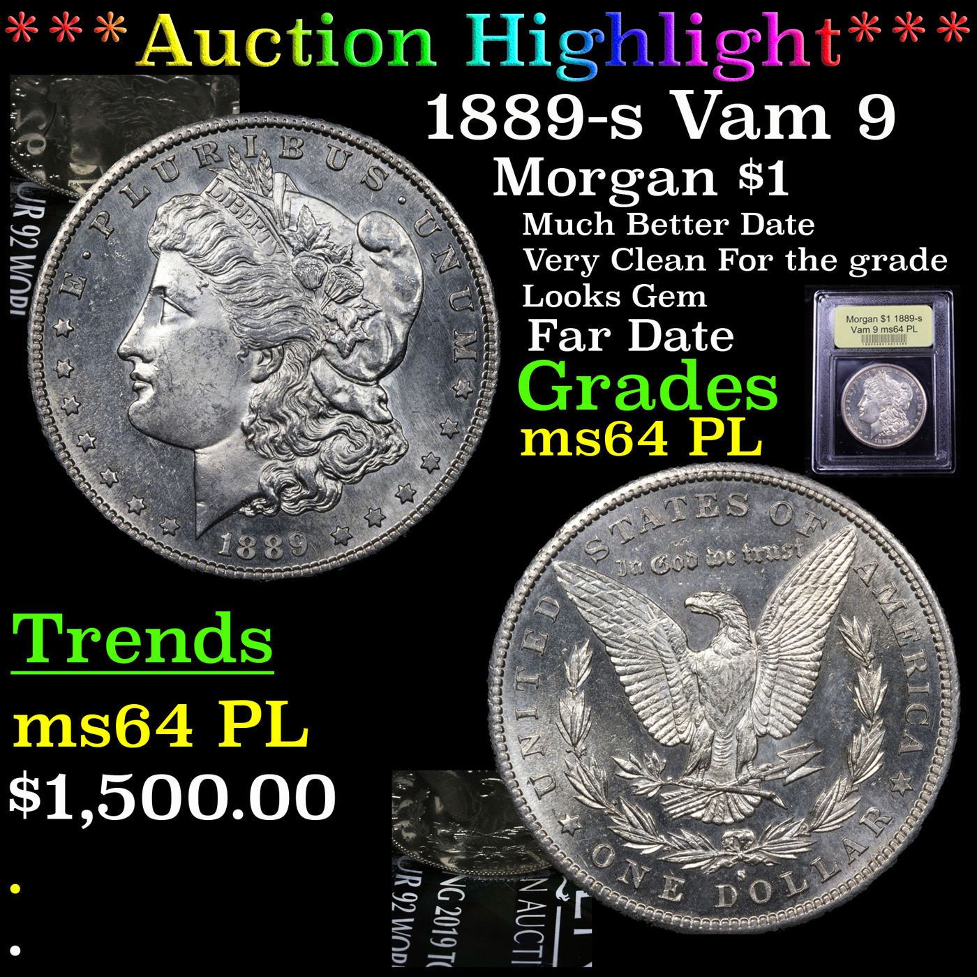 ***Auction Highlight*** 1889-s Vam 9 Morgan Dollar $1 Graded Choice Unc PL By USCG. A Corey's Pick, Bid to Win Coin