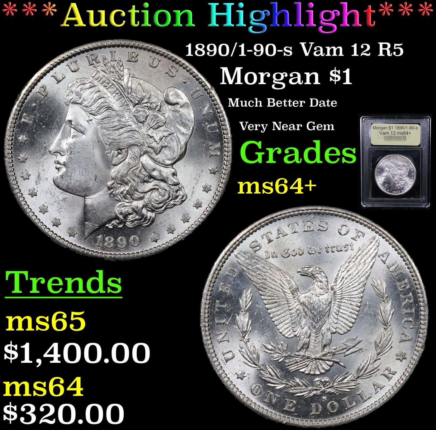 ***Auction Highlight*** 1890/1-90-s Vam 12 I2 R5 Morgan Dollar $1 Graded Choice+ Unc By USCG. A Corey's Pick, Bid to Win Coin