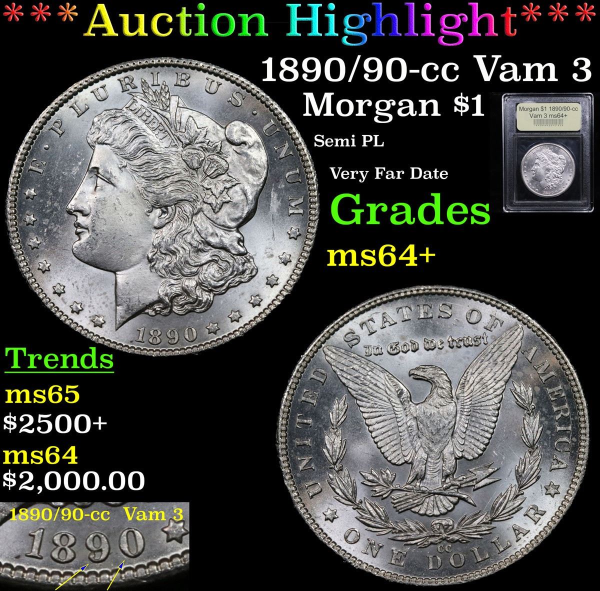 ***Auction Highlight*** 1890/90-cc Vam 3 Semi PL Very Far Date Morgan Dollar $1 Graded Choice+ Unc By USCG. A Corey's Pick, Bid to Win, Don't let it get Away, you might not find its equal Coin