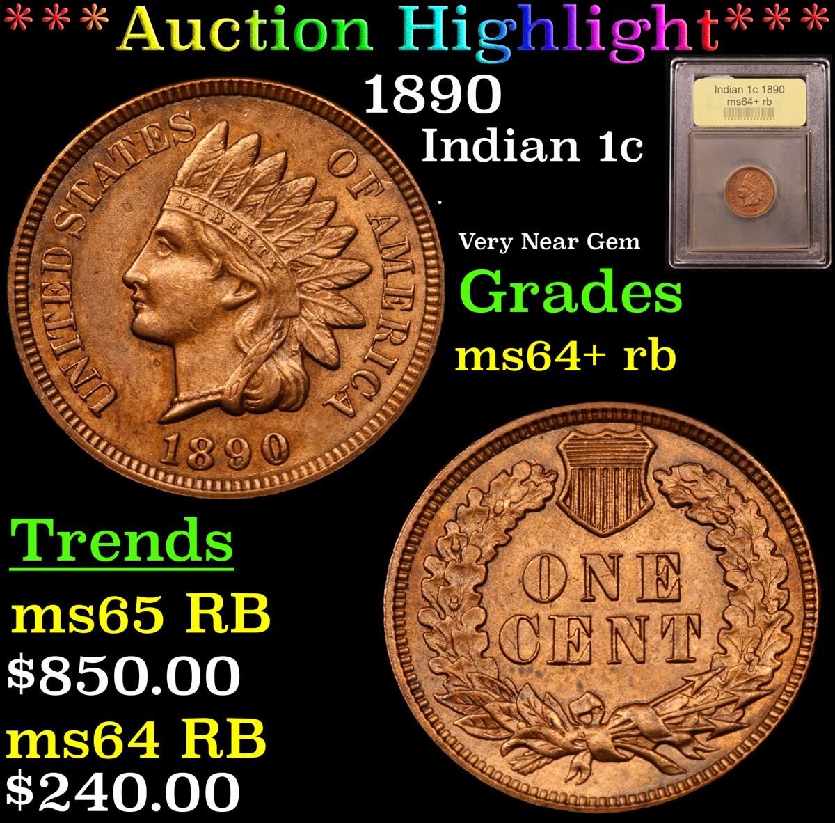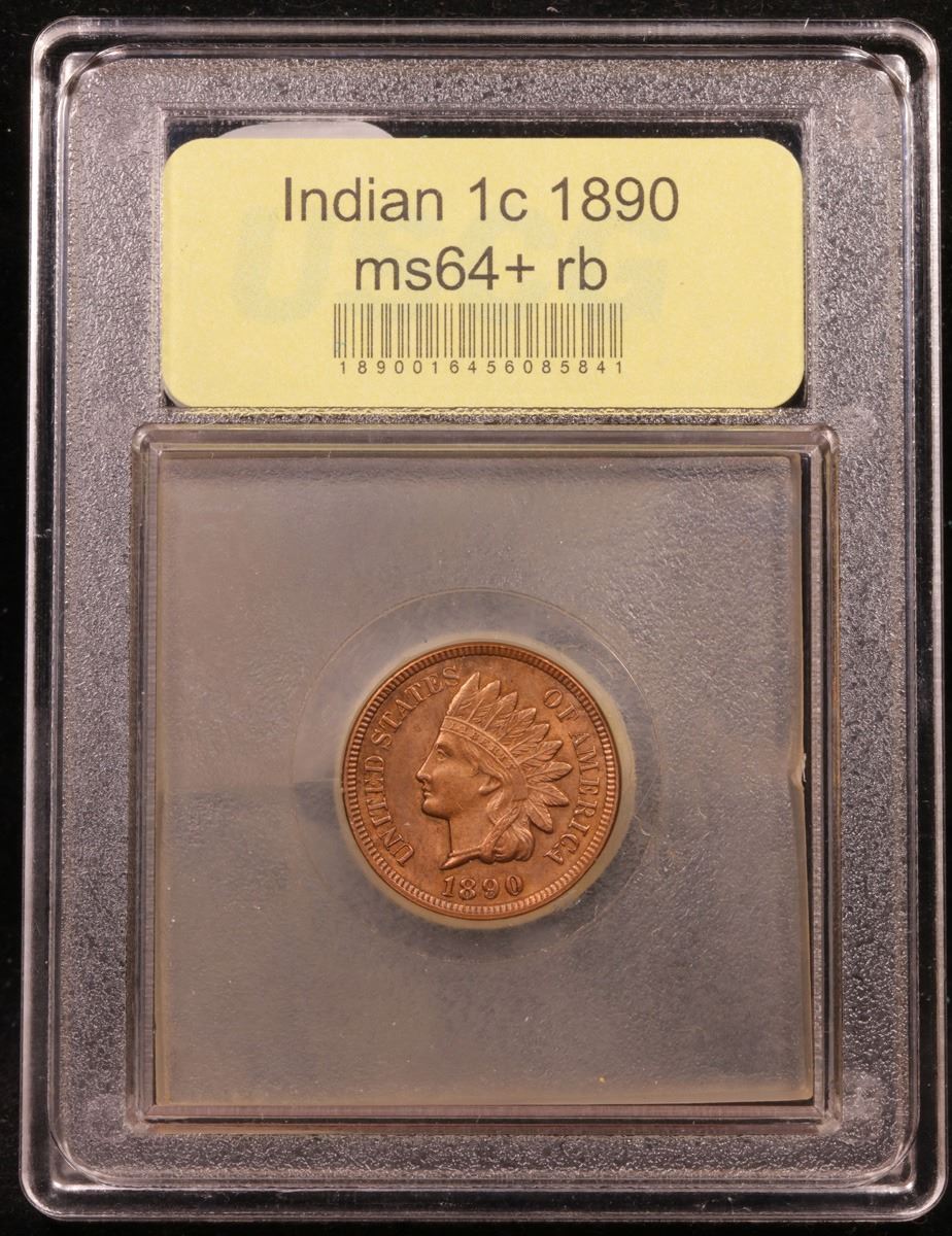 ***Auction Highlight*** 1890 Indian Cent 1c Graded Choice+ Unc RB By USCG.