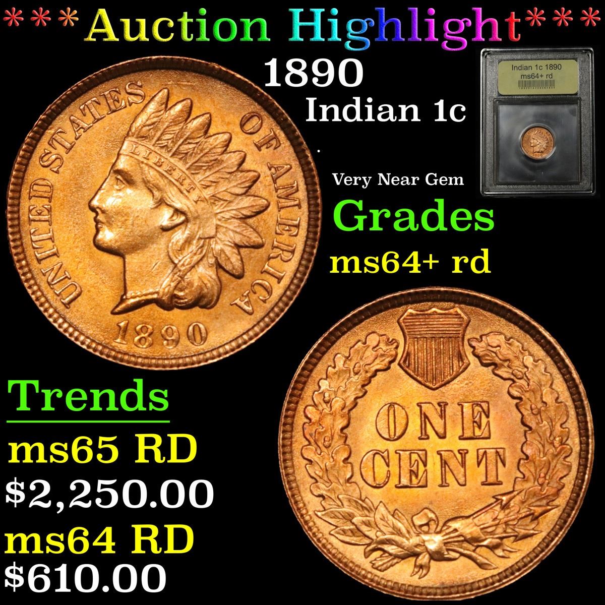 ***Auction Highlight*** 1890 Very Near Gem Indian Cent 1c Graded Choice+ Unc RD by USCG. A Corey's Pick, Bid to Win, Don't let it get Away Coin