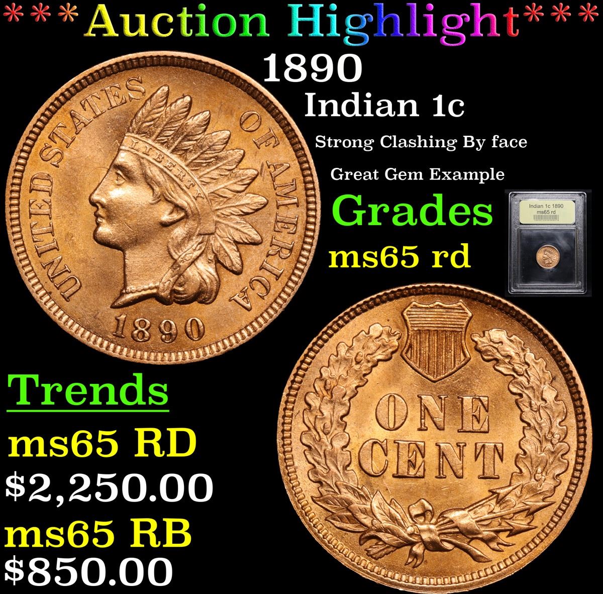 ***Auction Highlight*** 1890 Strong Clashing By face Great Gem Example Indian Cent 1c Graded GEM Unc RD By USCG. A Corey's Pick, Bid to Win, Don't let it get Away, you might not find its equal Coin