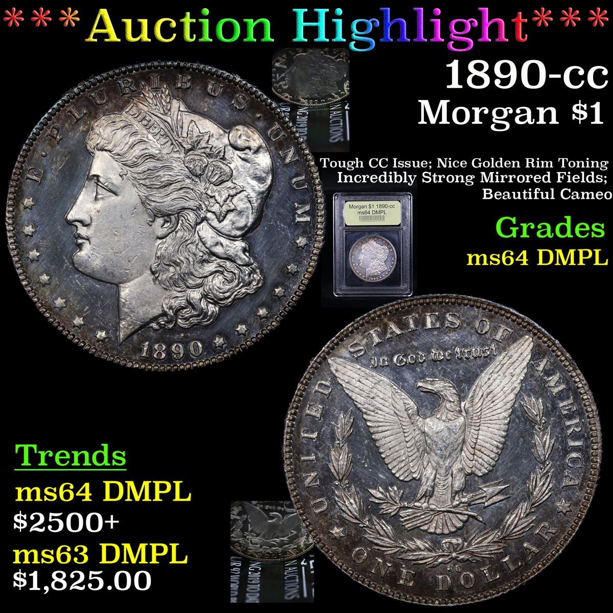 ***Auction Highlight*** 1890-cc Tough CC Issue; Nice Golden Rim Toning Incredibly Strong Mirrored Fields; Beautiful Cameo Morgan Dollar $1 Graded Choice Unc DMPL By USCG. A Corey's Pick, Bid to Win Coin